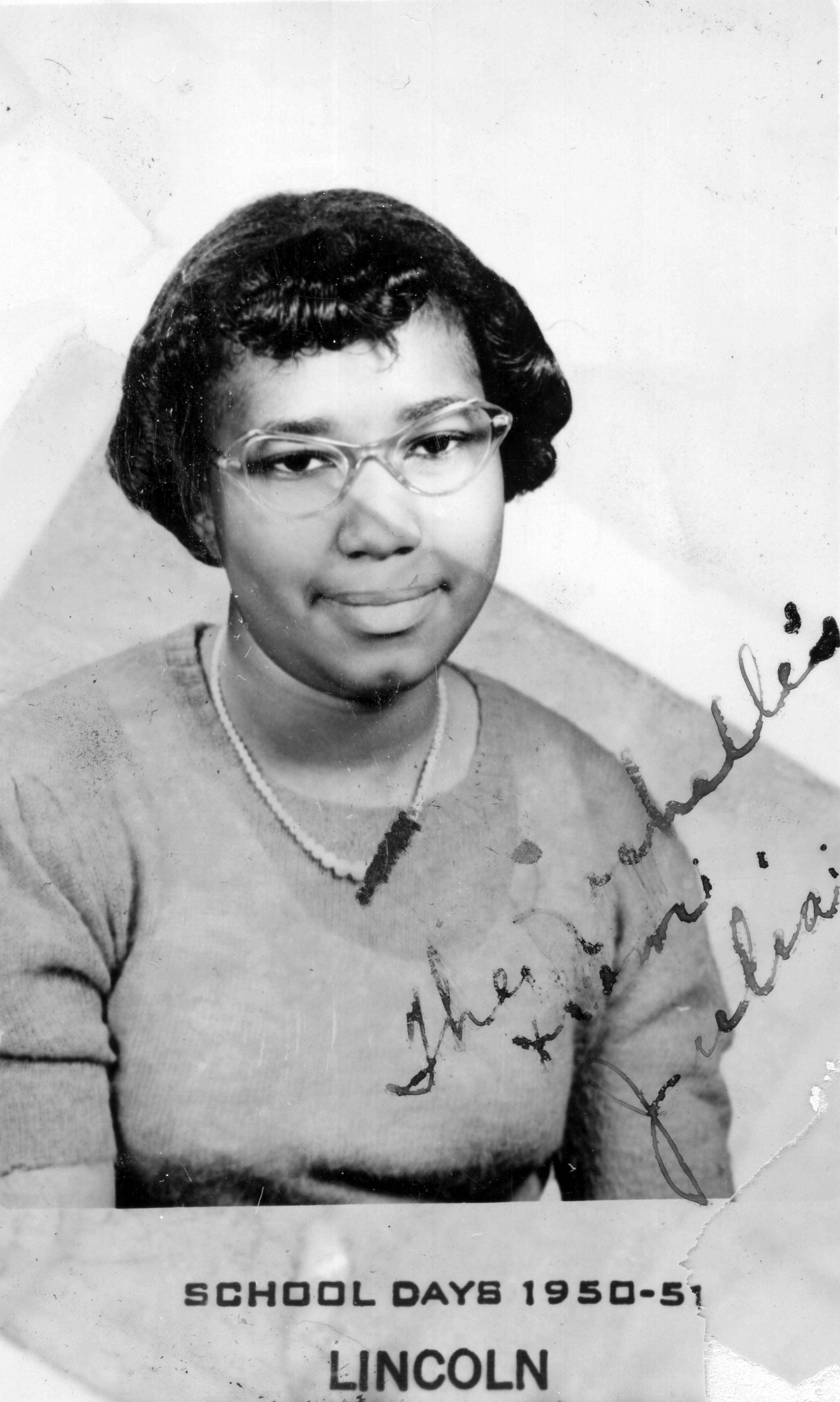 Lincoln High School photo for 1950-51 school year, signed to the Rochelle's by Julia. Dr. Charles E. Rochelle served as a private in the U.S. Army in World War I. After the war, he became the first African-American to receive a doctorate in education from the University of California-Berkeley. Dr. Rochelle was a social studies teacher and then principal of Lincoln High School in Evansville, IN, retiring in 1962. He served as a member of Liberty Baptist, Cawthar Shrine Temple, Deaconess Hospital Foundation Board, and was a 33rd Degree Mason.