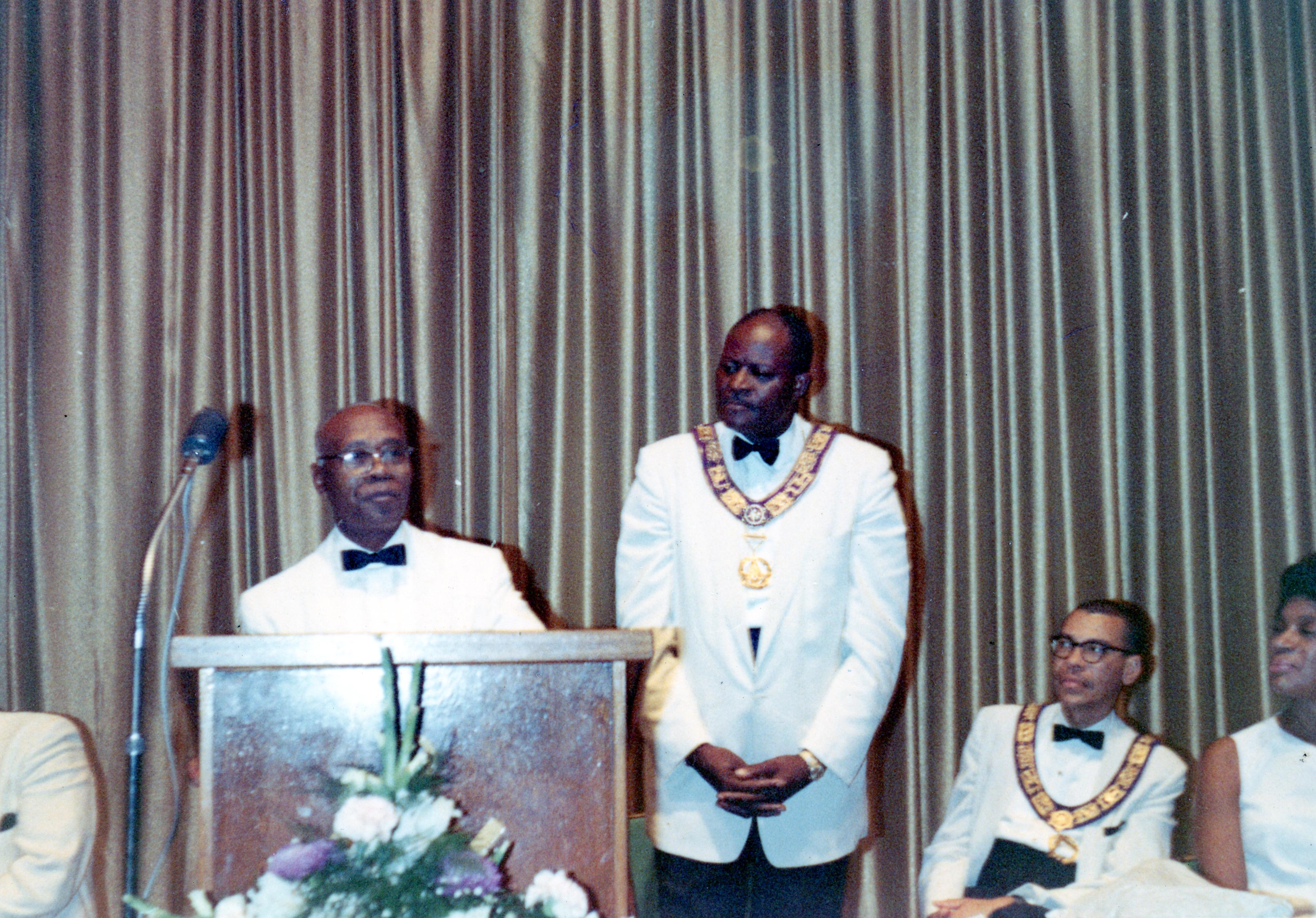 Dr. Charles E. Rochelle accepting an award for dedicated service to Prince Hall Masonry. r. Charles E. Rochelle (1895-1993) served as a private in the U.S. Army in World War I. After the war, he became the first African-American to receive a doctorate in education from the University of California-Berkeley. Dr. Rochelle was a social studies teacher and then principal of Lincoln High School in Evansville, IN, retiring in 1962. He served as a member of Liberty Baptist, Cawthar Shrine Temple, Deaconess Hospital Foundation Board, and was a 33rd Degree Mason.