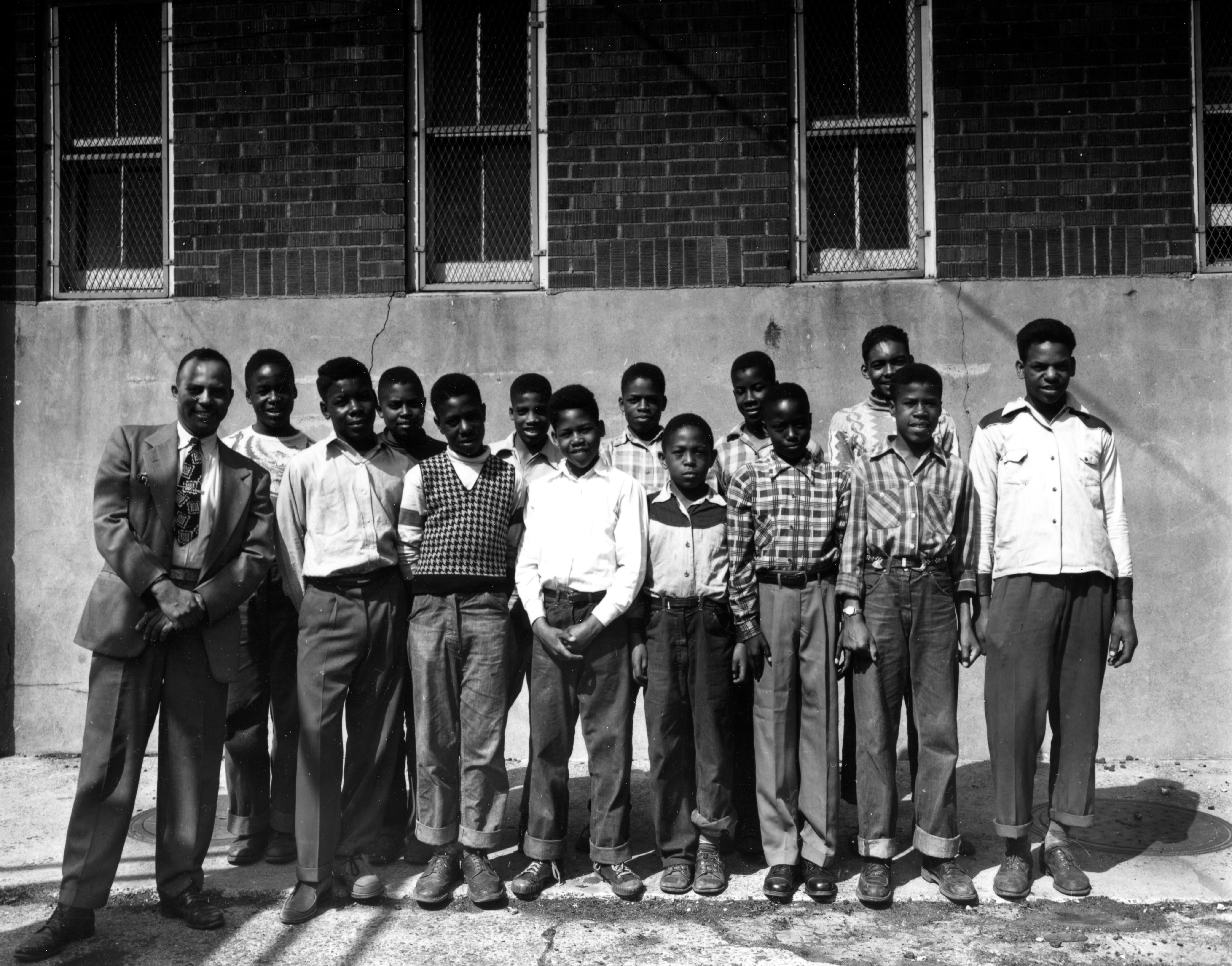 Class from Lincoln High School with teacher. The school was and is at 635 Lincoln Ave., although now it is K-8.