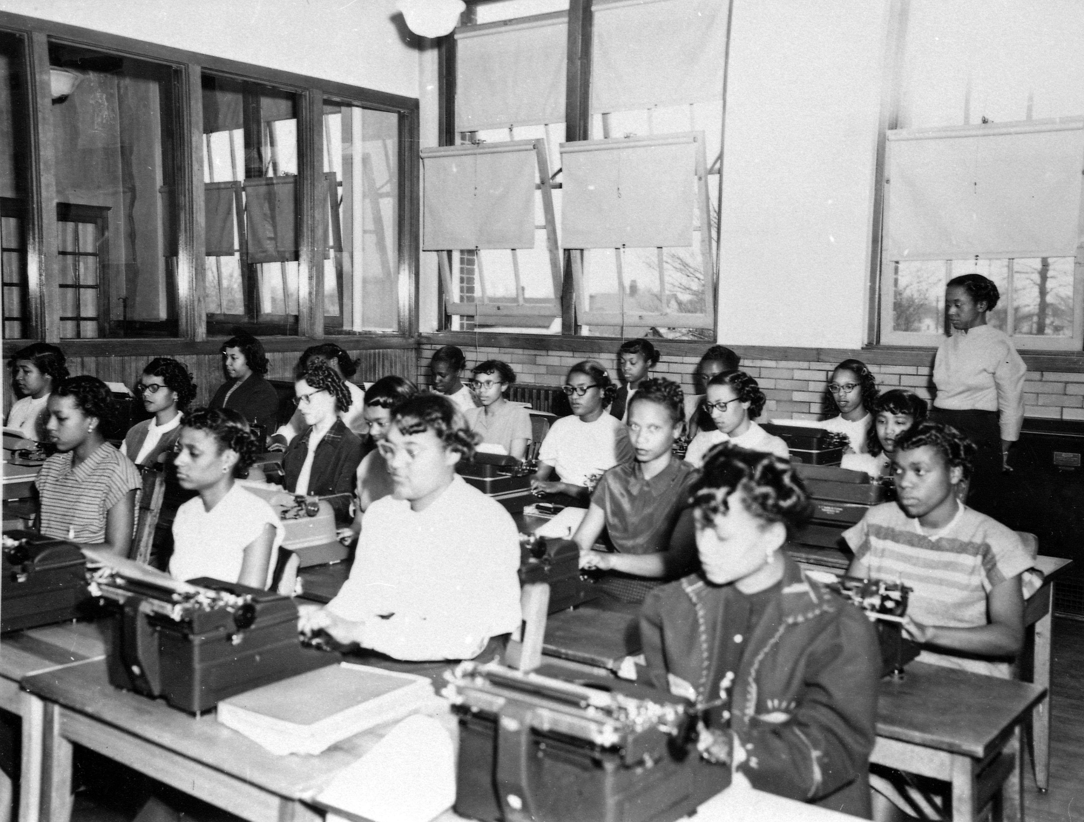 Lincoln High School typing class. The school was and is at 635 Lincoln Ave., although now it is K-8.