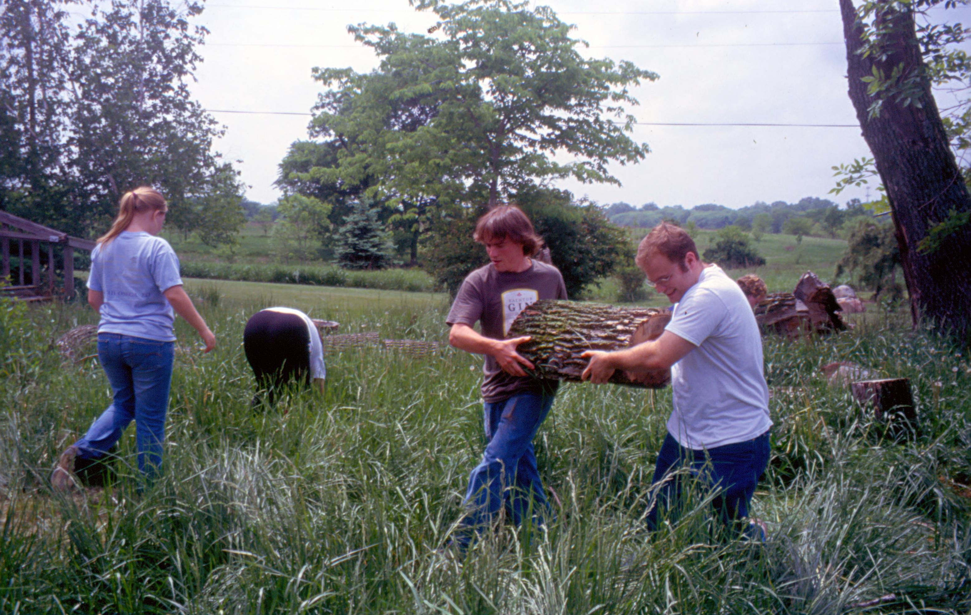 Hanover College students hauling firewood