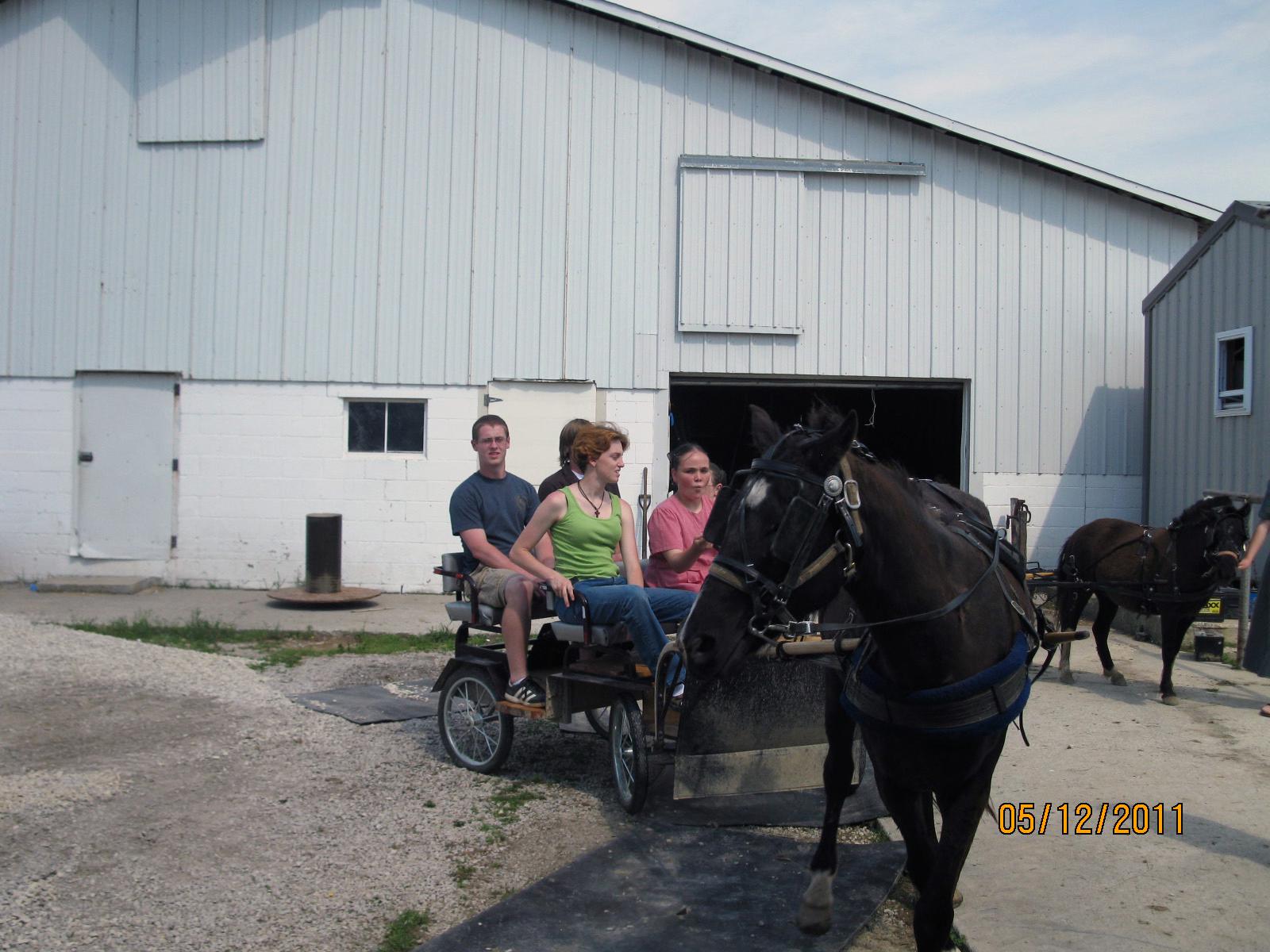 Wagler Farm - Hanover College students riding horse and buggy - animals
