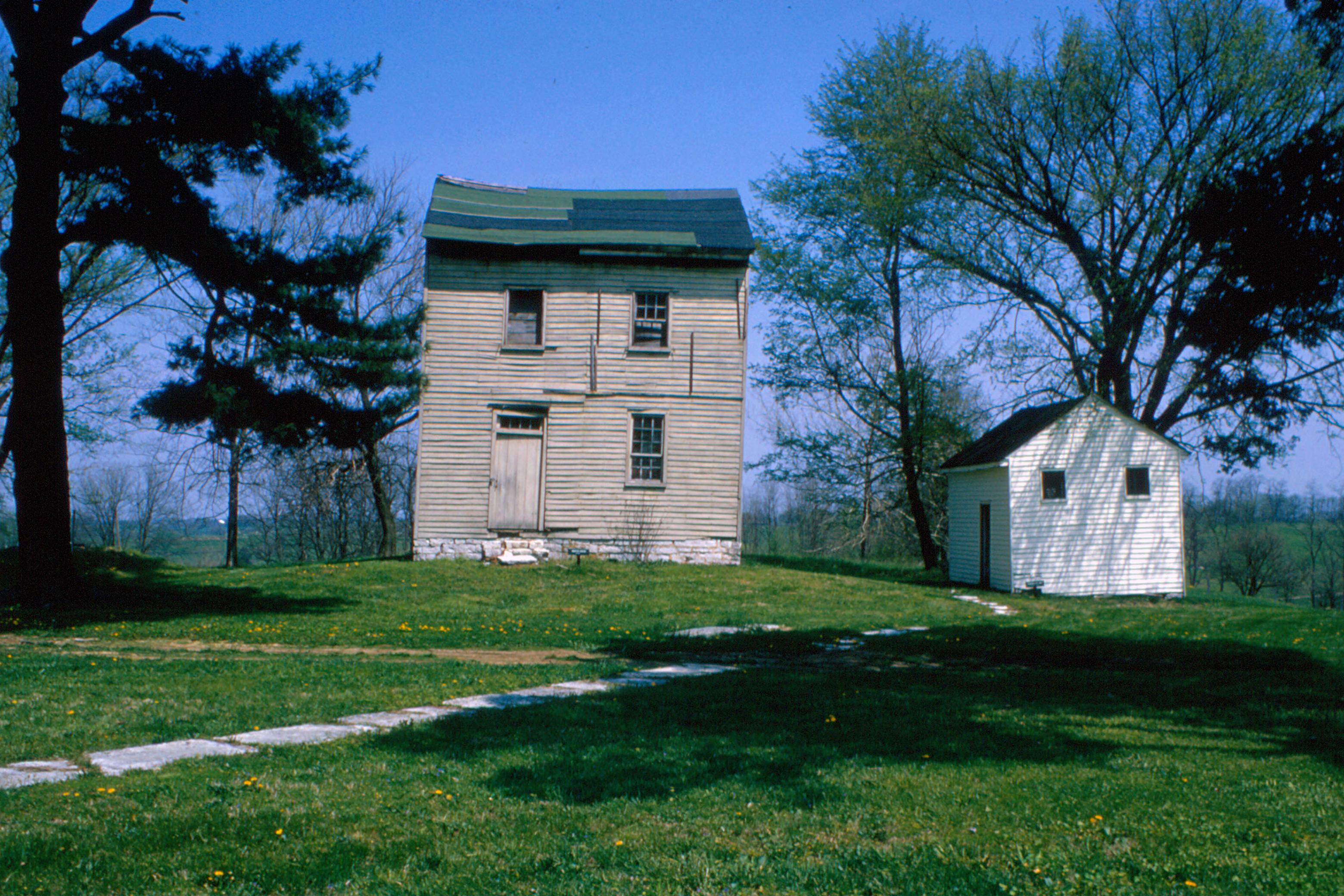 Center Family Water House (left) and Bath & Wash House (right) prior to restoration - unknown date