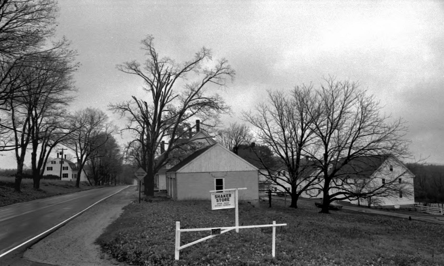 View north of village (building behind sign is a garage, other buildings identified in other photos)