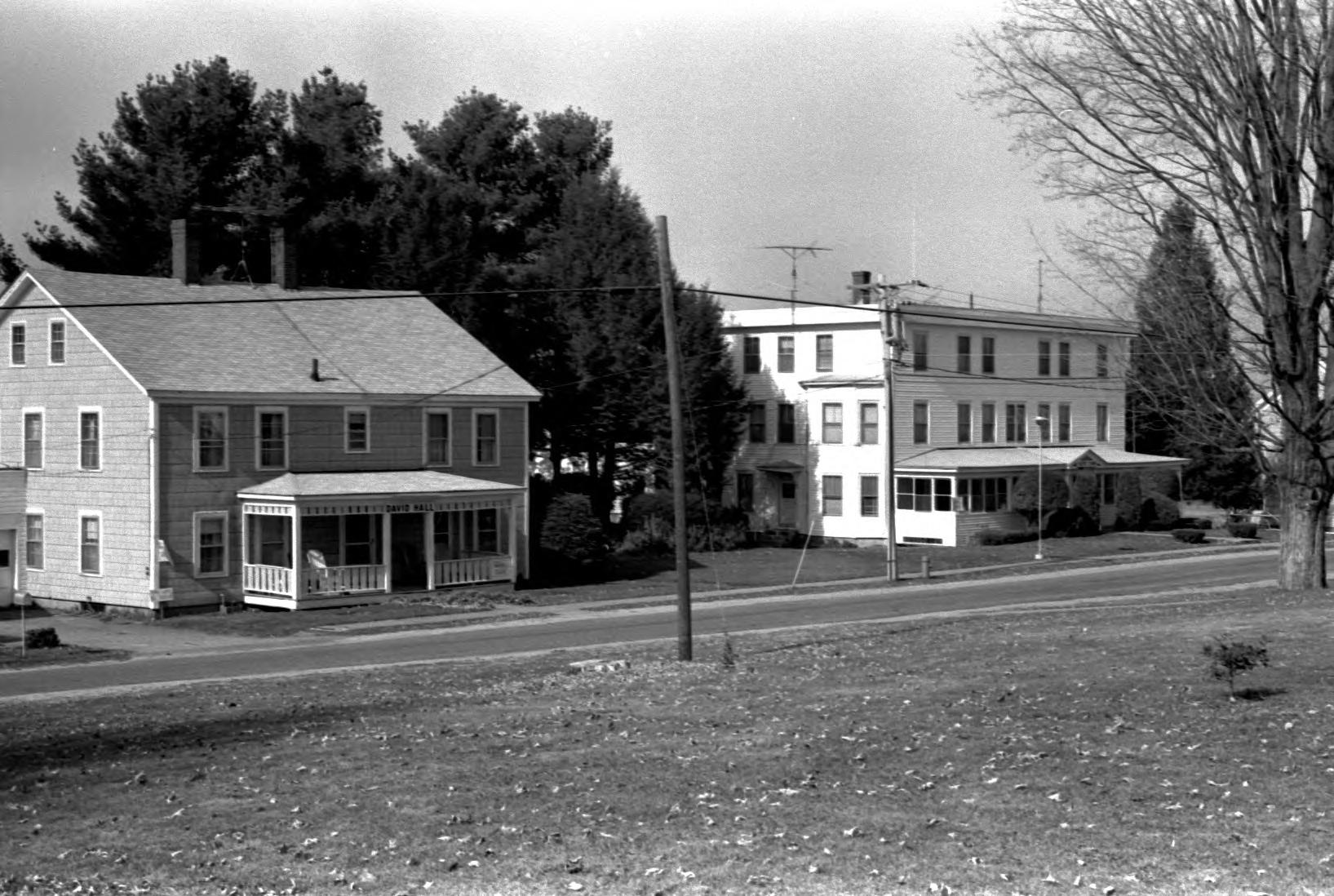 Church Family buildings, (left) Girl's Shop, (right) 3rd Church Family dwelling (roof has been removed)