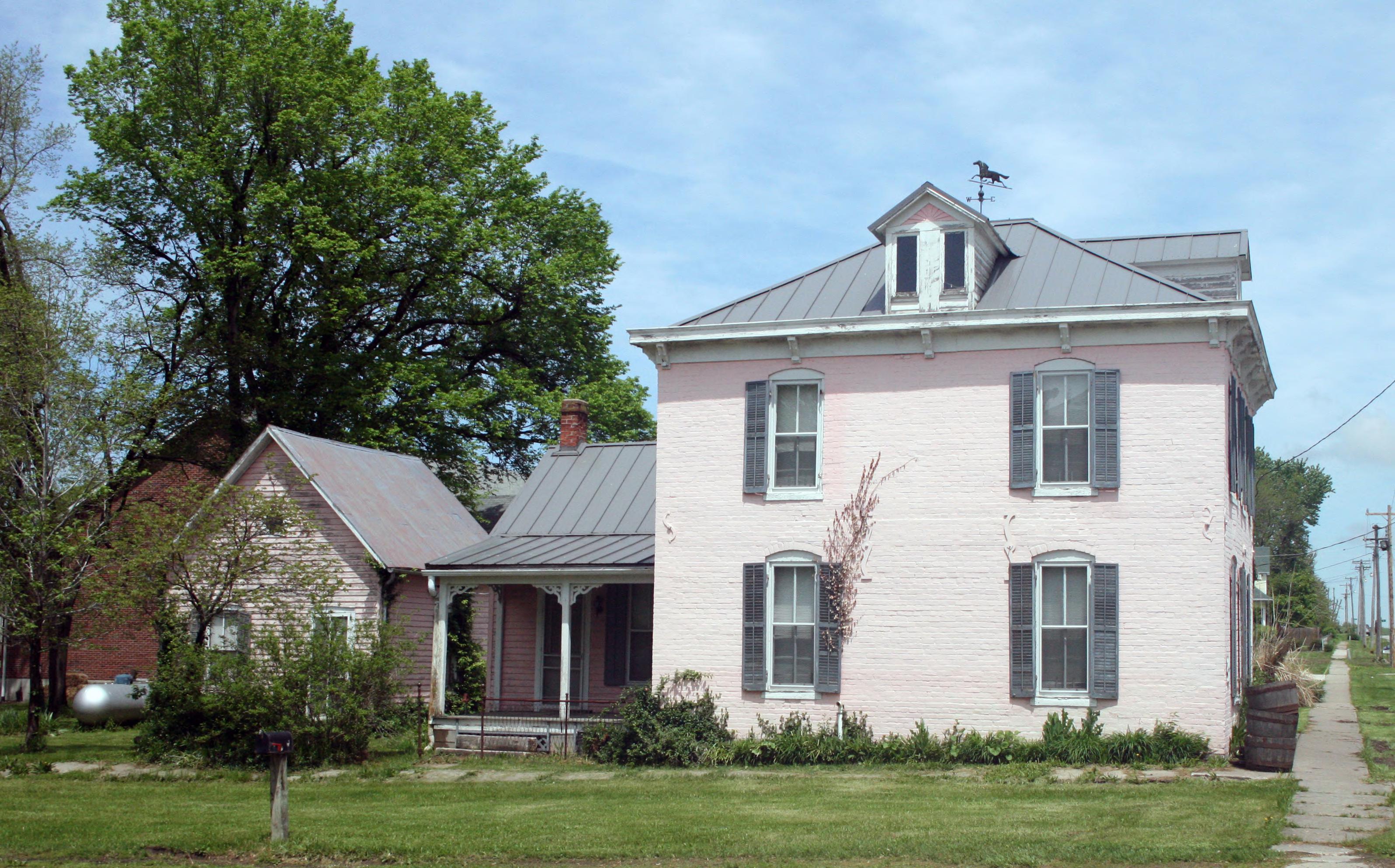 View looking north at the David Bower Haus on the northwest corner of Main and 2nd Streets