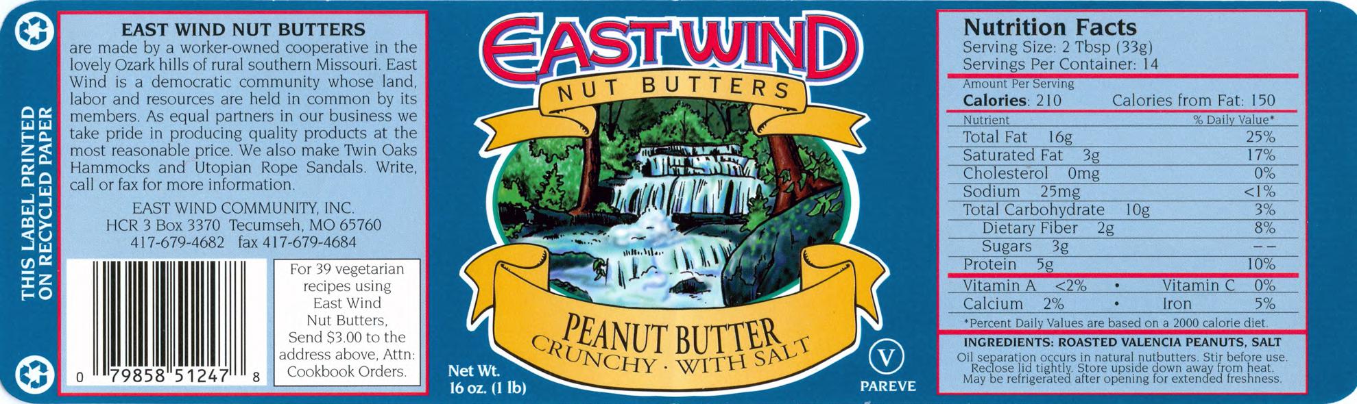 East Wind Nut Butters crunchy peanut butter label