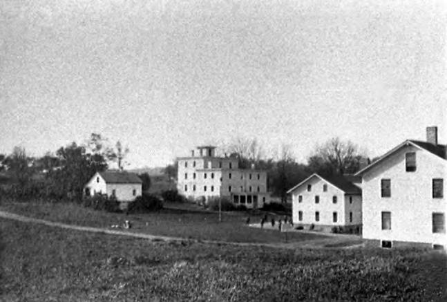 View of the West Family, left to right, Trustees Office, dwelling, Sewing House and ?)