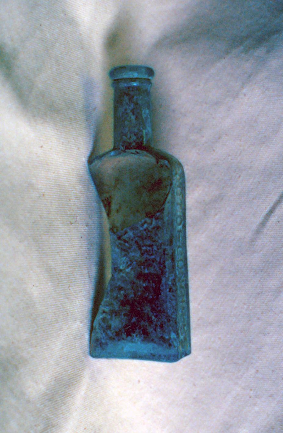 Artifact, glass bottle, found during restoration of Center Family Broom Shop