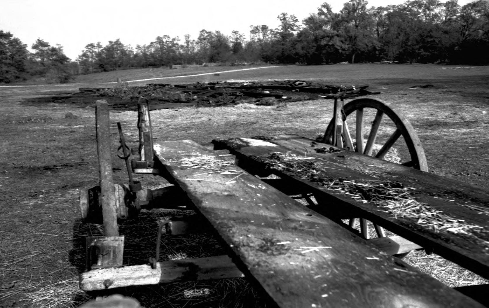 The wagon that was used as a prop and charred during the fire of the stable built in the West Family for the Black Beauty mini-series