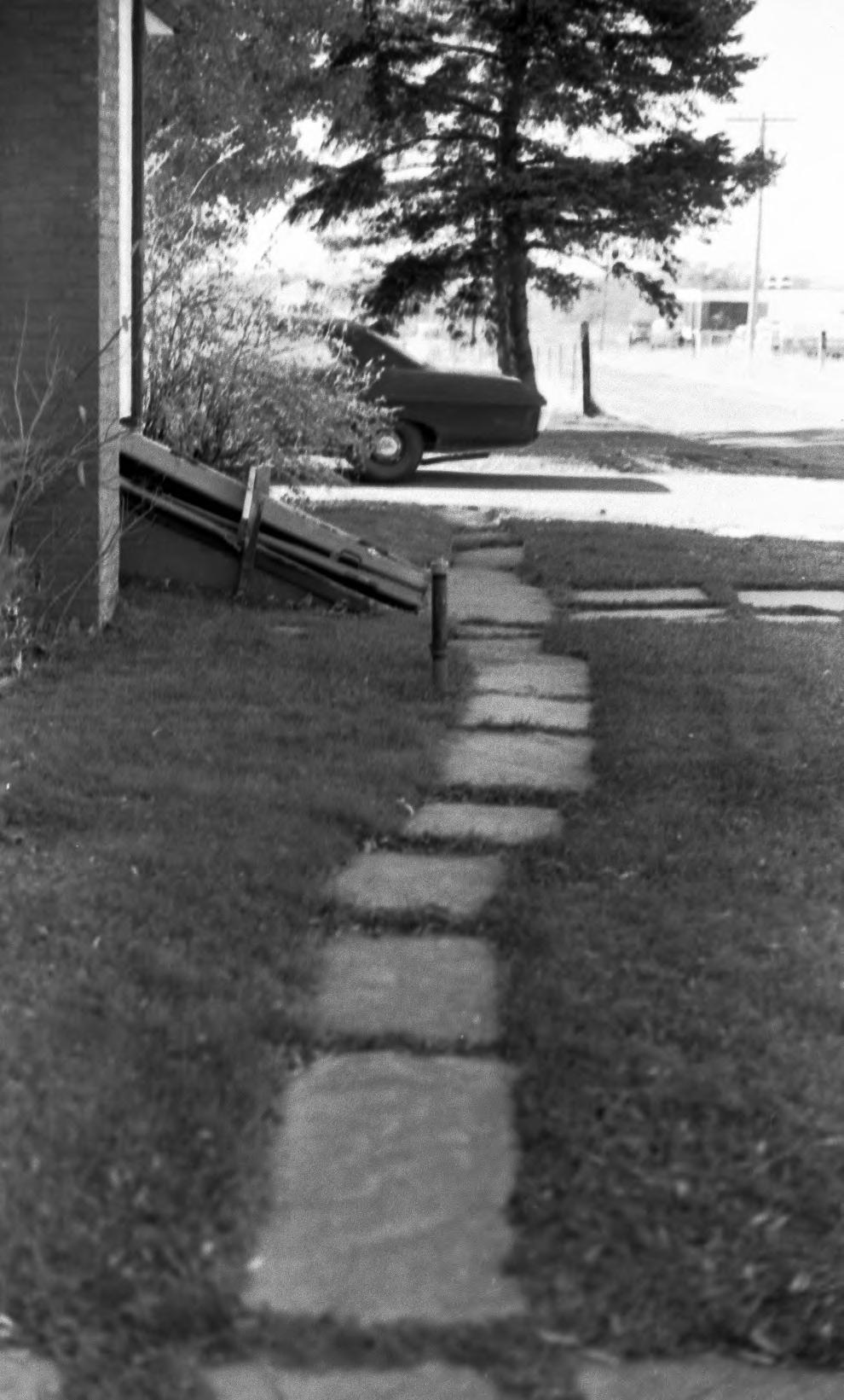 Detail of sidewalk at Shaker structure with an entrance to a cellar