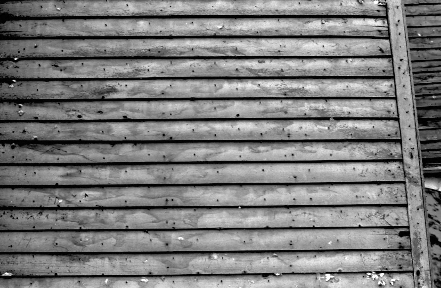 Detail of area over cellar entrance on south wall of 1st North Family Dwelling (note discoloration where pent roof was located)