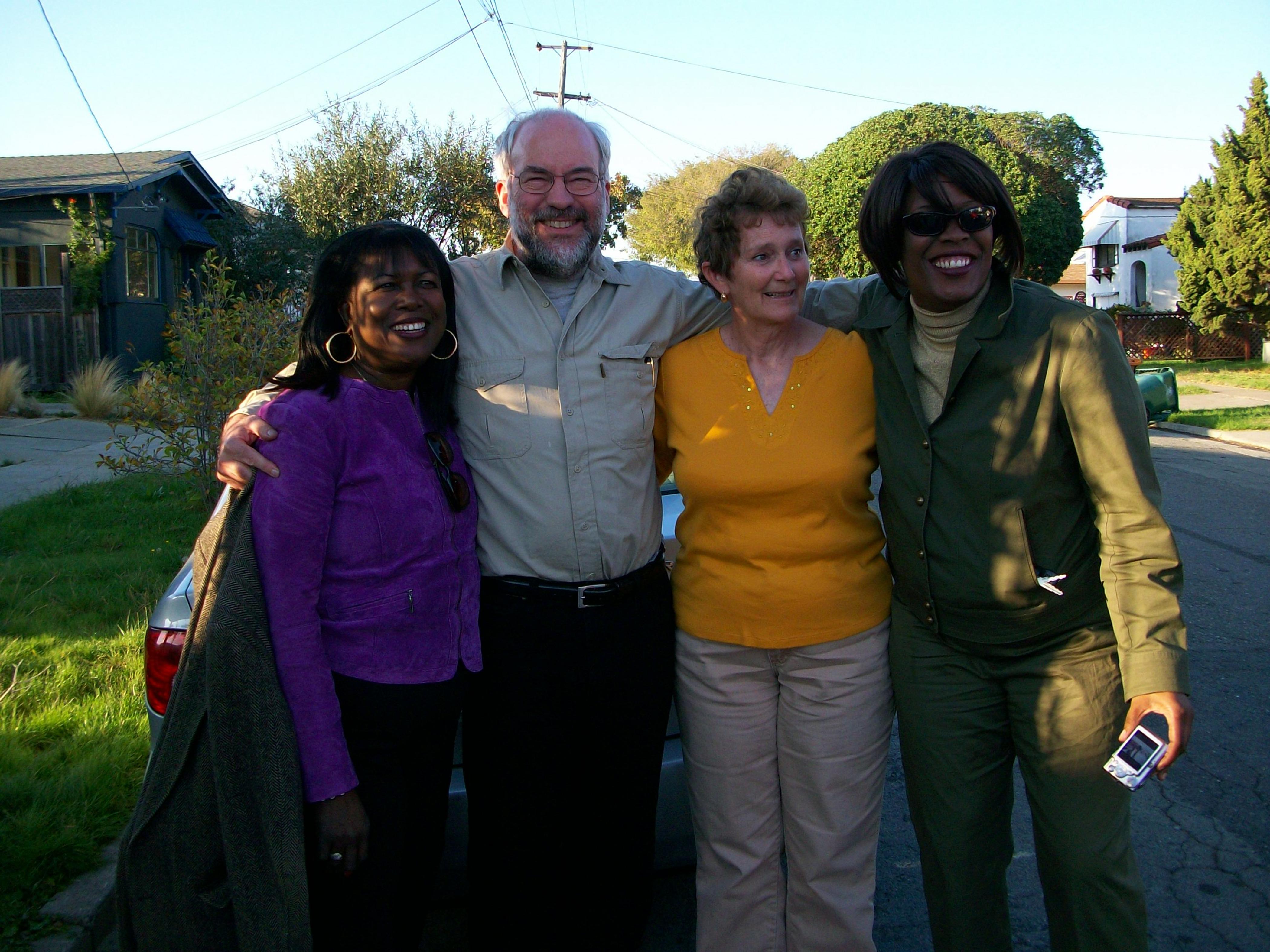 An unknown woman, Fielding M. McGehee, Laura Johnston Kohl, and Bunny Fackson pose for a photo outside. (L to R)