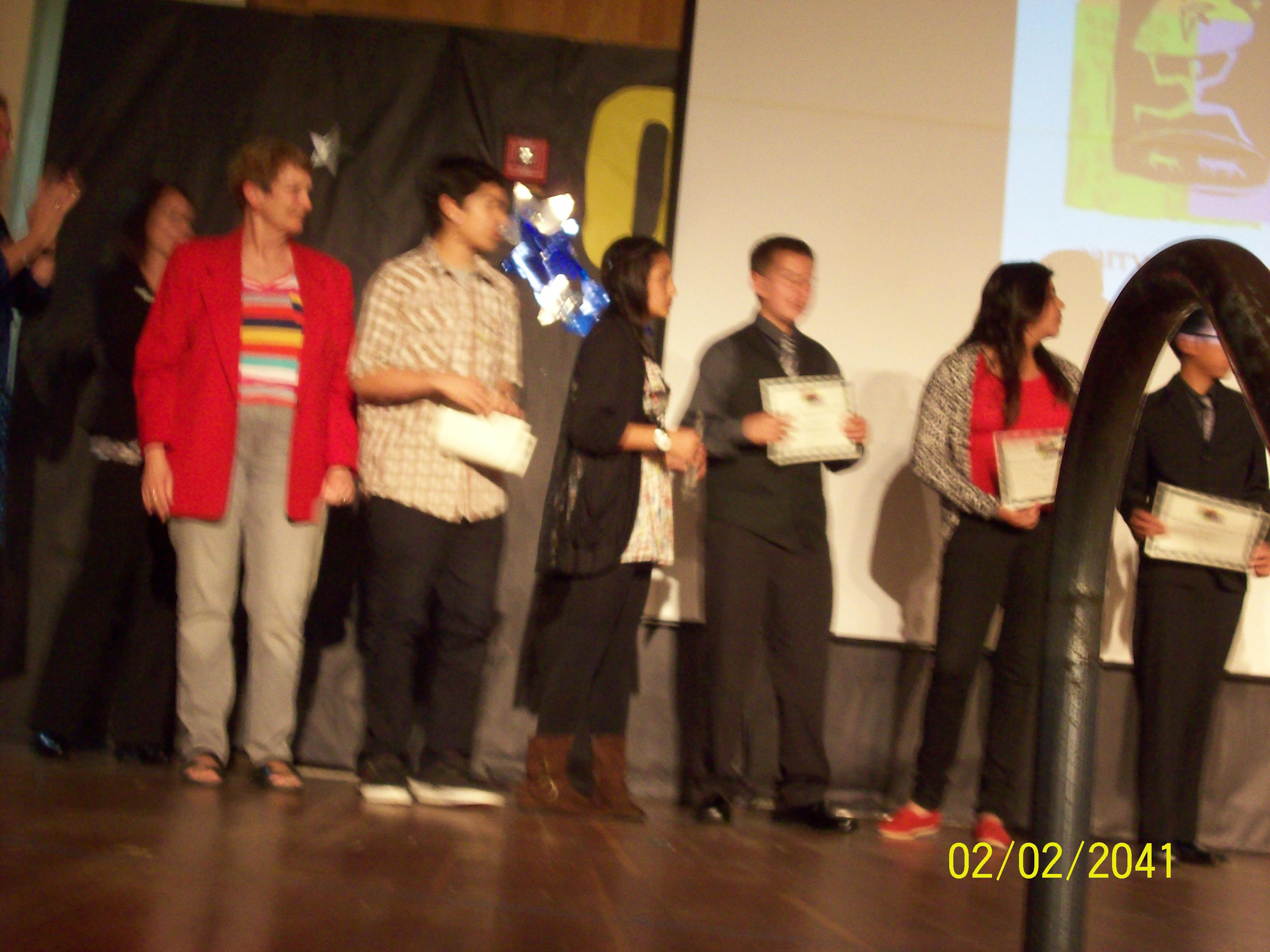 Laura Johnston Kohl stands onstage at an award ceremony
