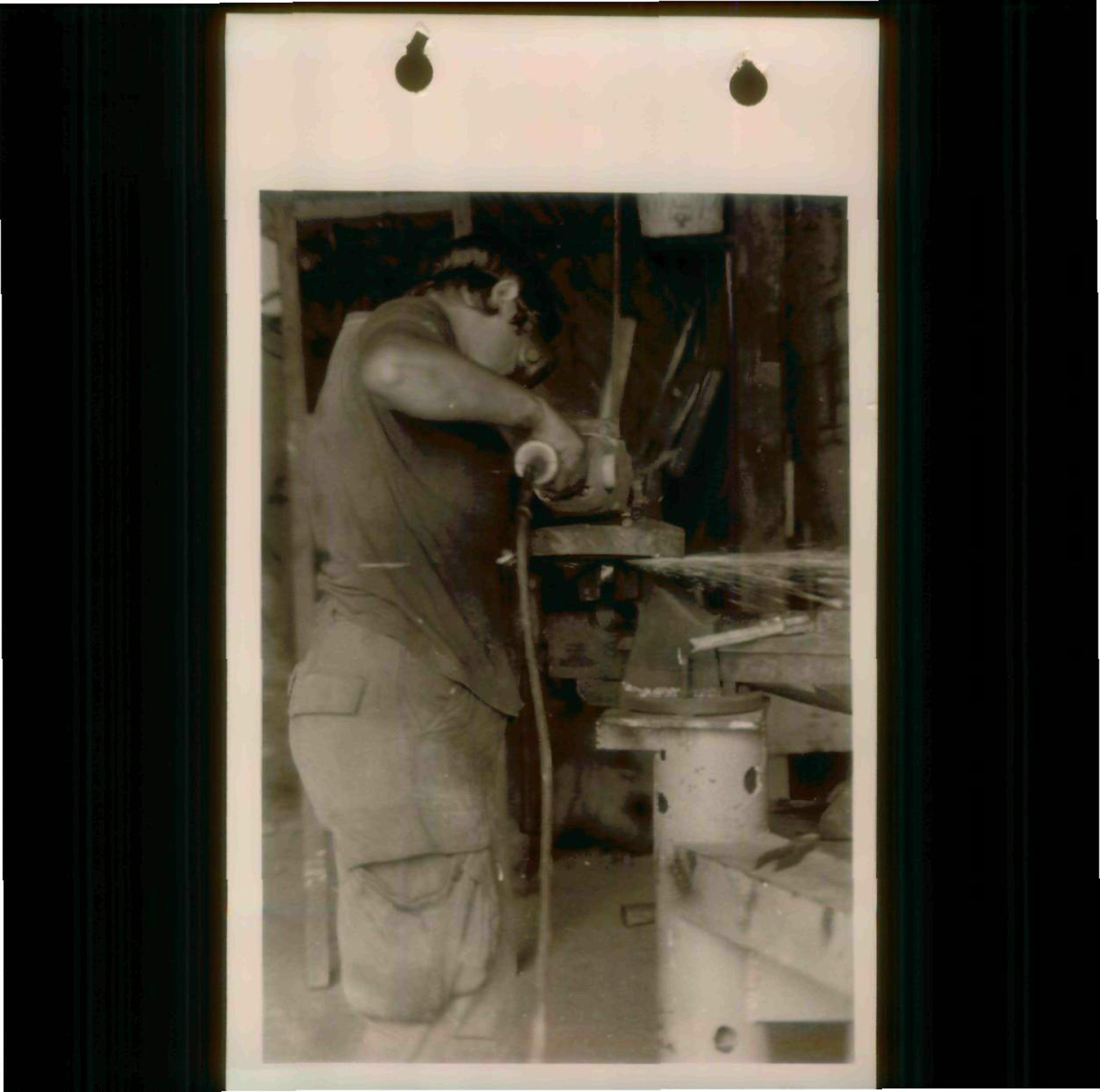A man uses a sander