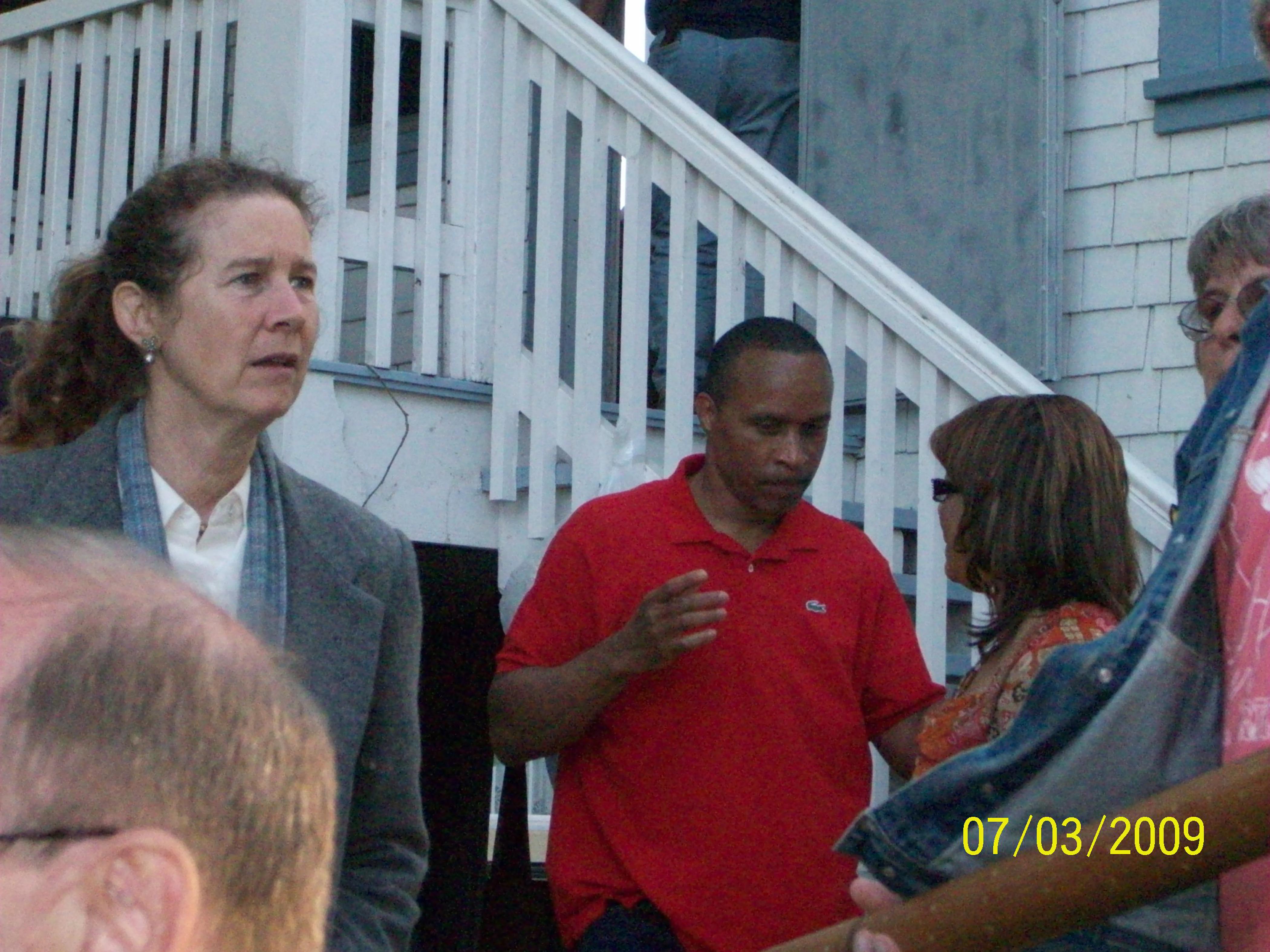 Rebecca Moore, Johhny Cobb, Leslie Wagner-Wilson among others apeak in a group at a reunion event.
