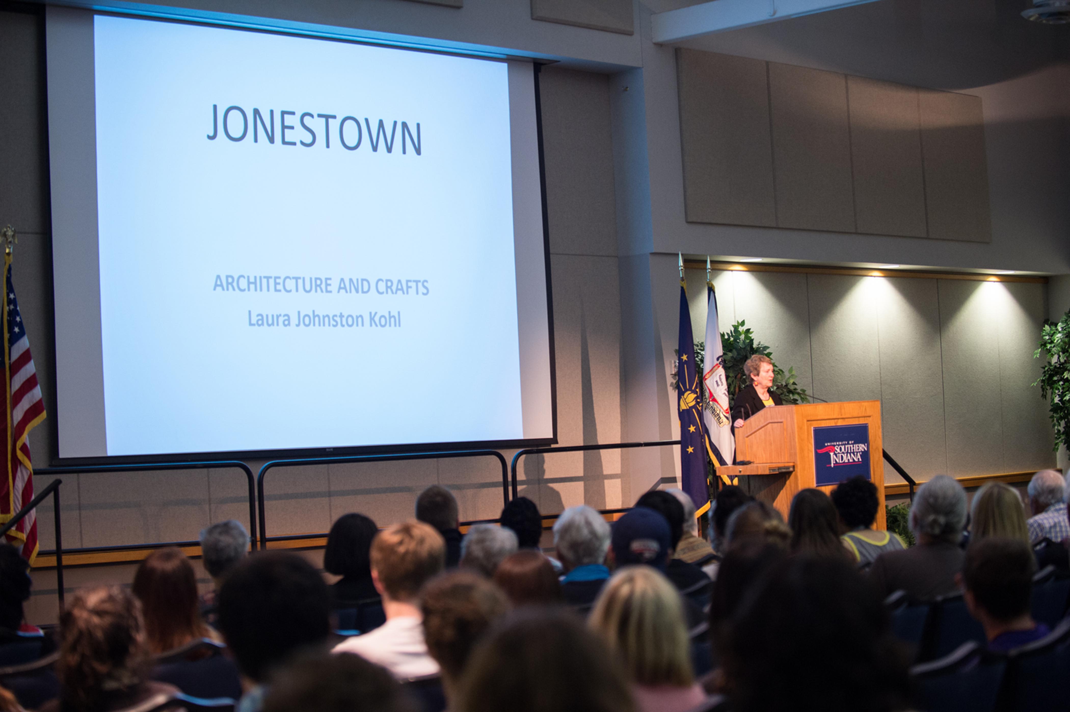 Laura Johnston Kohl in Carter Hall giving a presentation