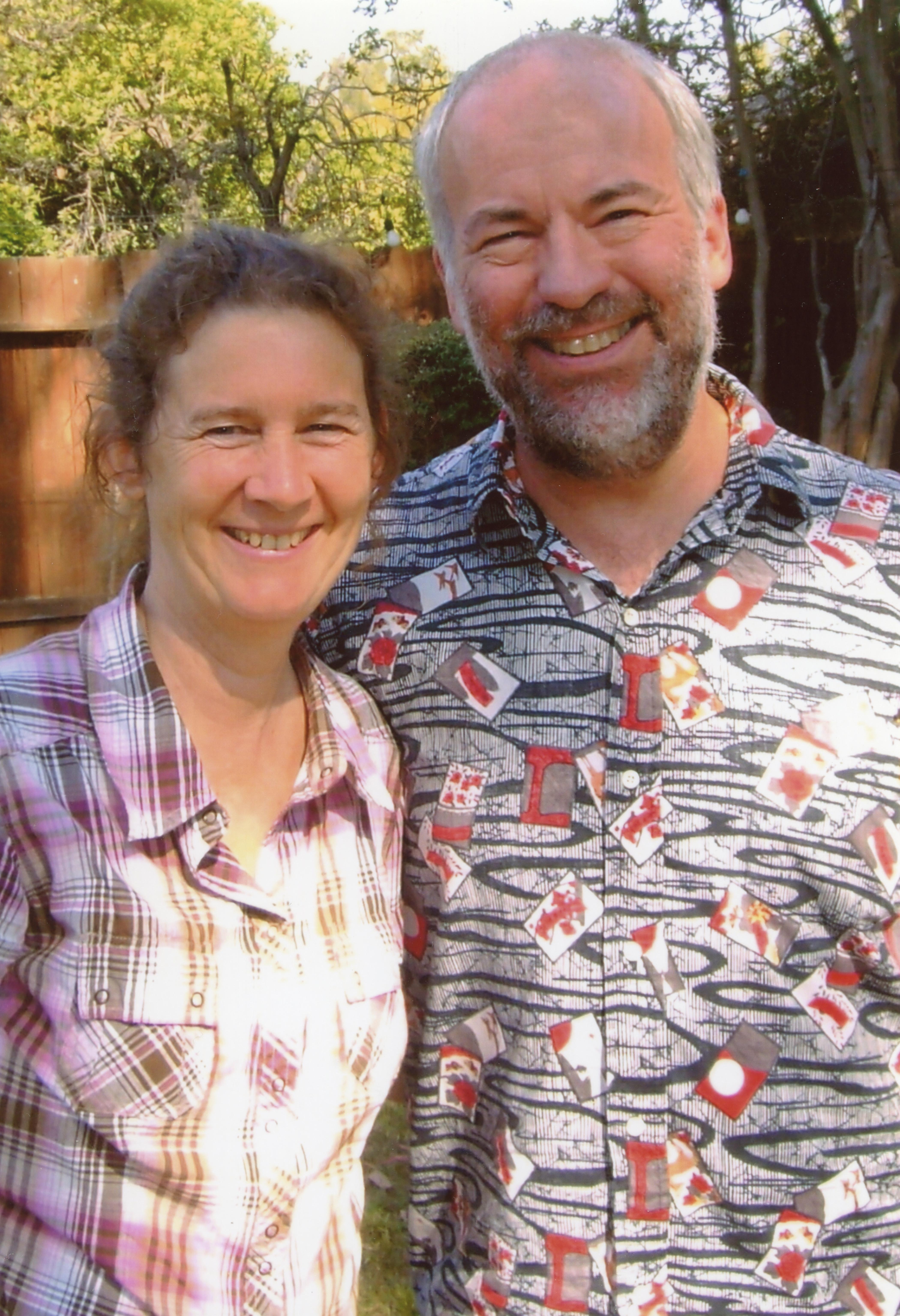 Fielding M. McGehee (Mac) and Rebecca Moore pose for a photo outside during a reunion event.