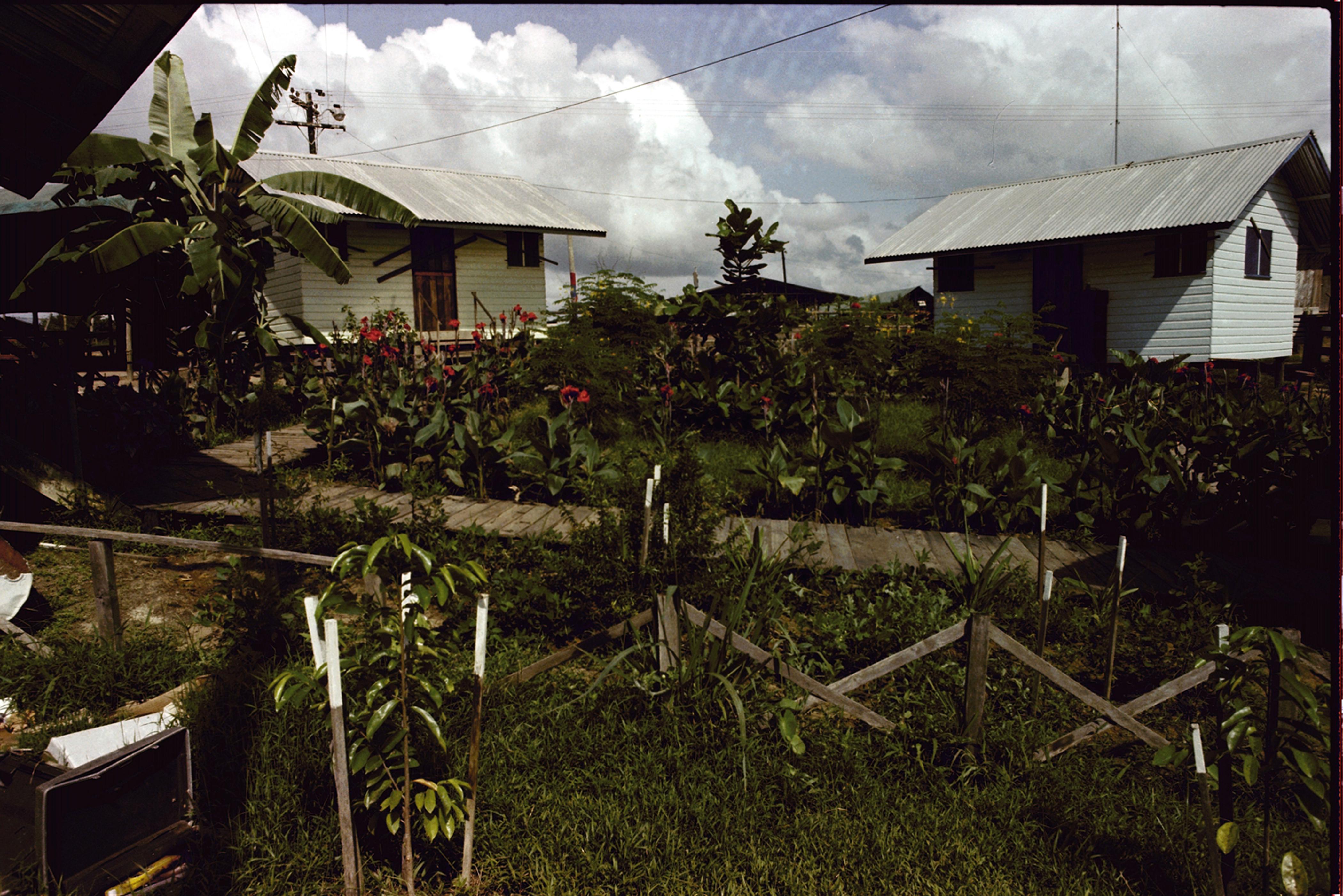 Houses with gardens around them in Jonestown.
