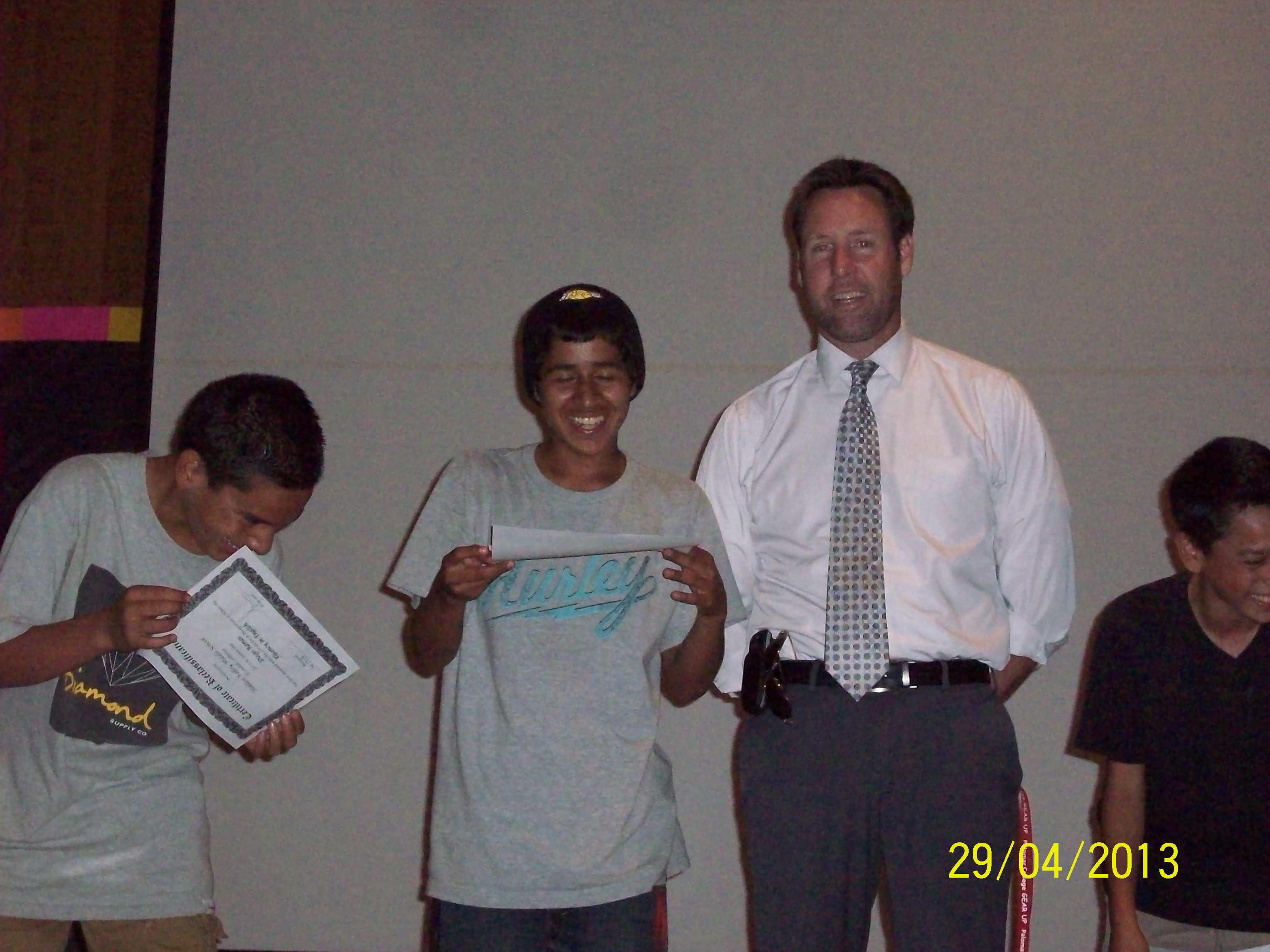 A group of students pose with their awards for their fluency in English from Hidden Valley Middle School.