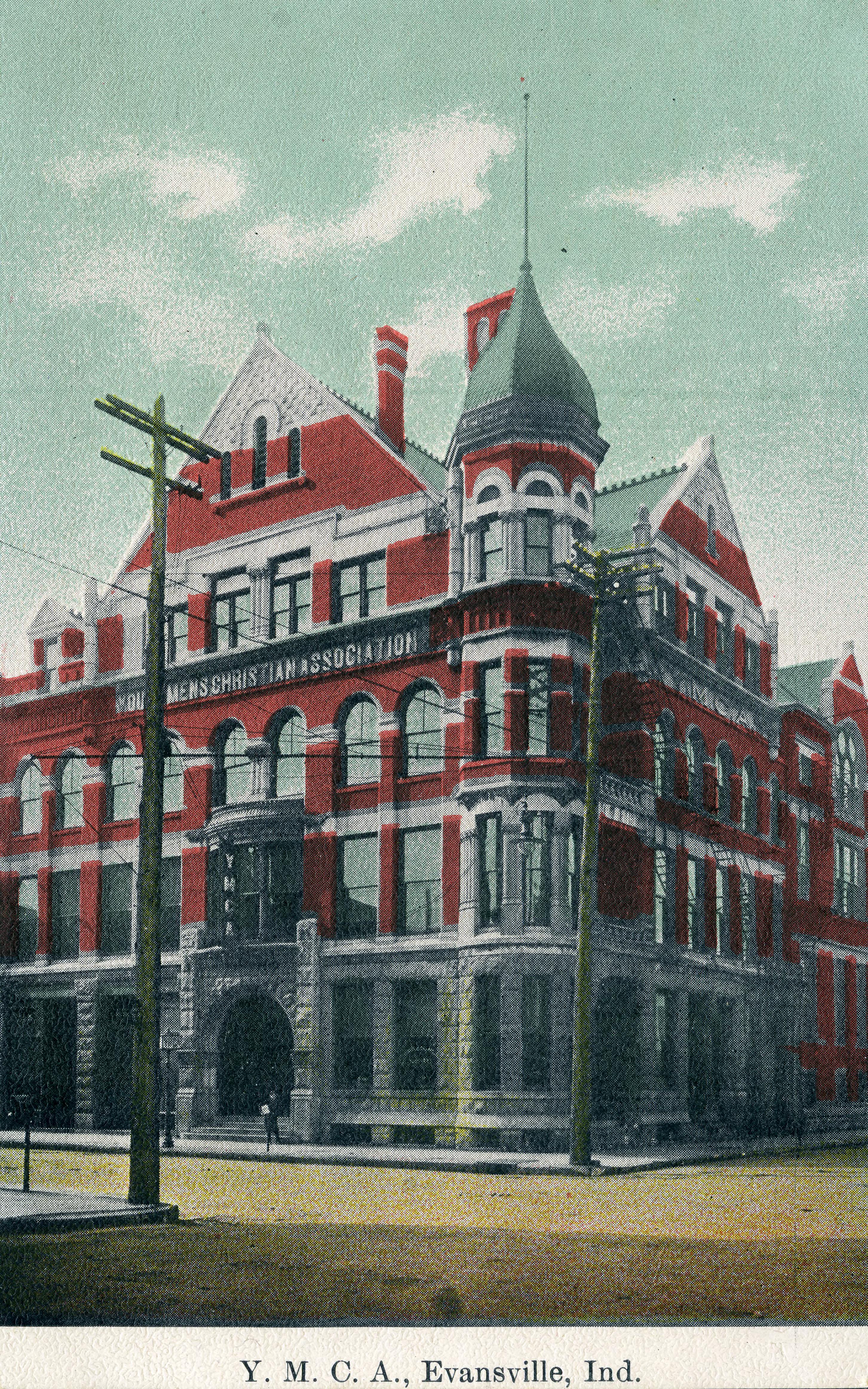 Old YMCA at what was formerly 201-5 Upper 4th St. This was the home of the YMCA from 1890/1891-1914, when the organization moved to a different building. The building seen here was used by other groups/businesses until 1928, when it was razed for the construction of Central Union Bank. On this site today stands that building, the Hulman building. SEE RH 033-211 for the building to which the YMCA moved after it vacated this facility.
