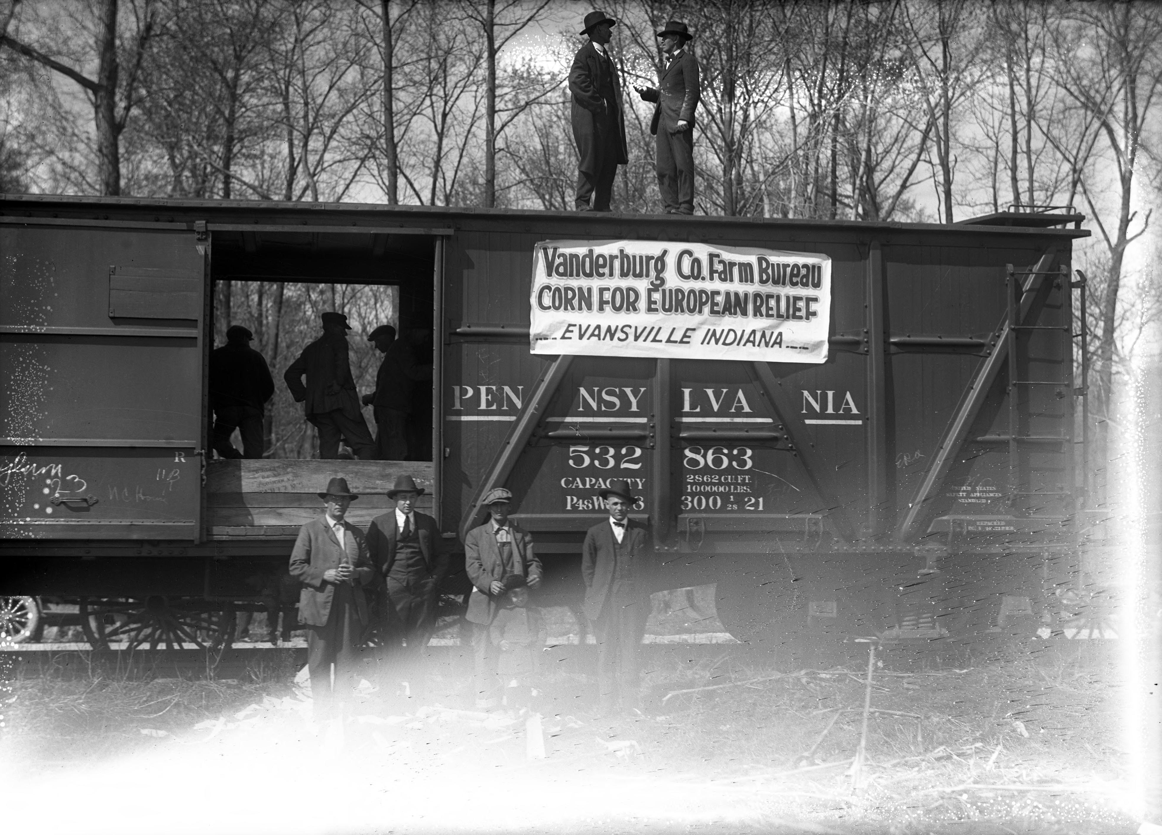 Boxcar of corn for European relief