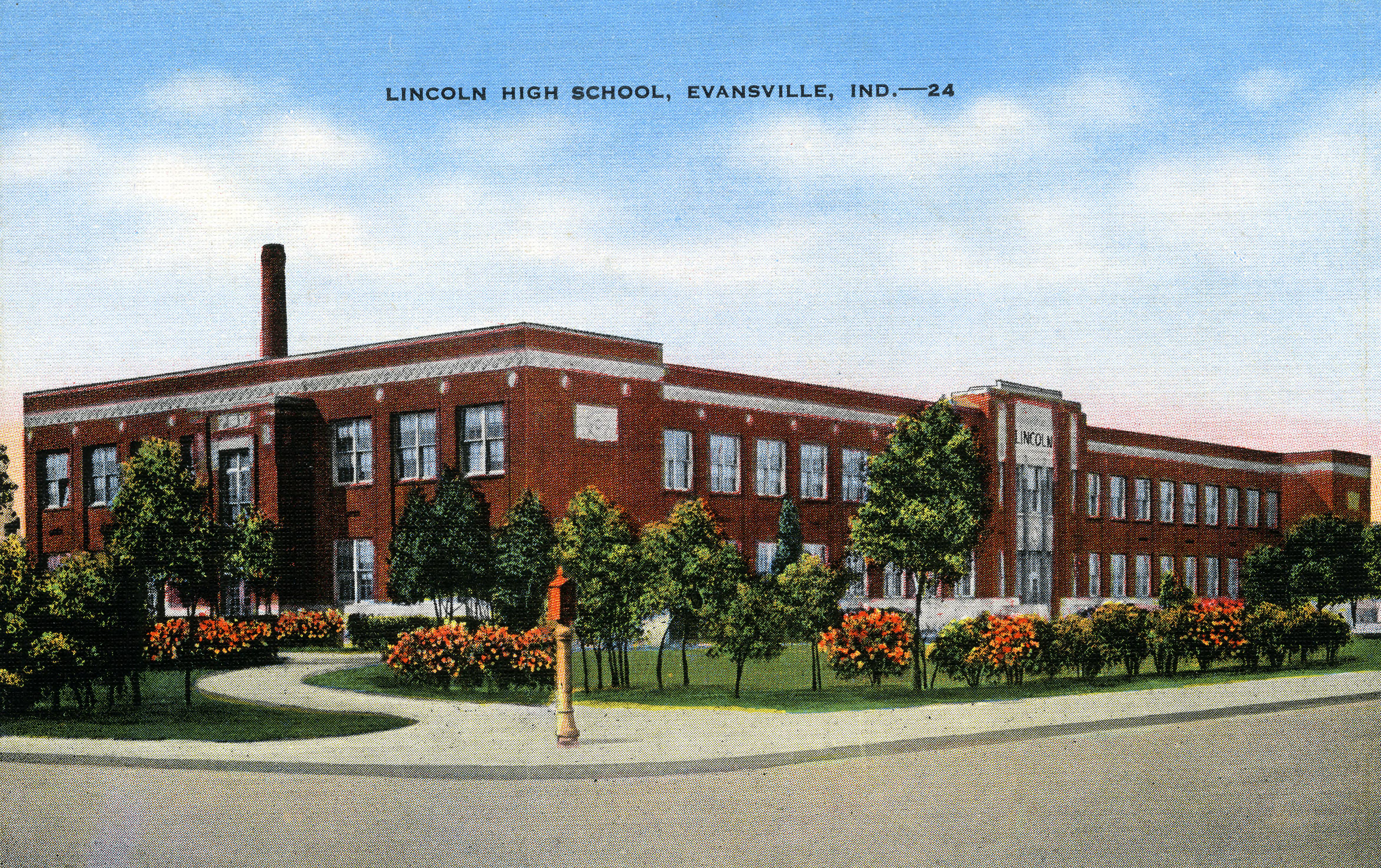 Lincoln School/High School at 635 Lincoln Ave. was built/opened in 1928 to serve the education needs of the African-American community. At the time it was the largest such school in the city and incorporated 3 previous schools--Oakdale, Clark St., and Governor St. In 1962 the high school closed and the school became K-8. Since 1985 it has been an (unsegregated) elementary school. The front of this postcard has a 24 after the location. It is postcard 32161N.