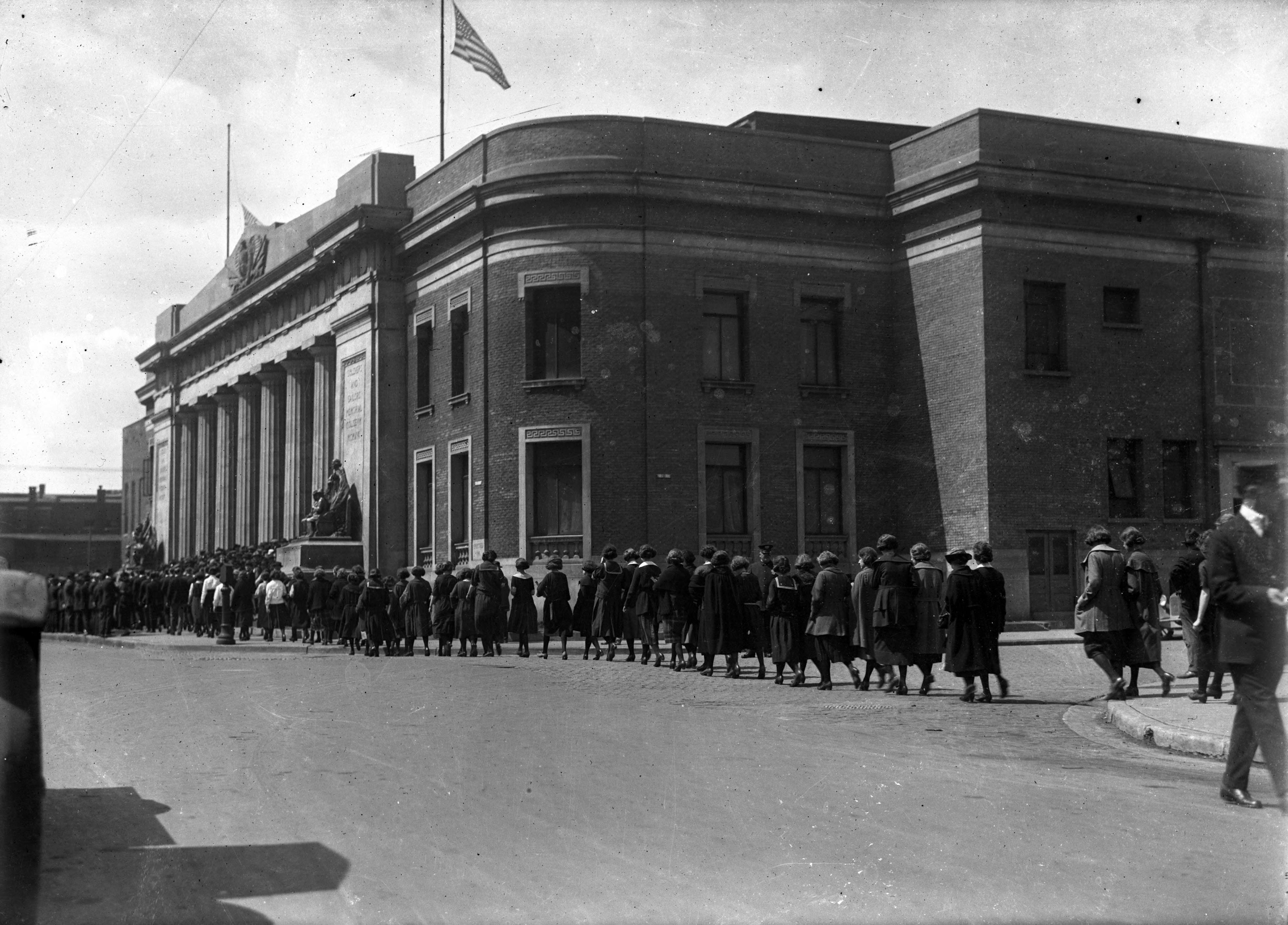Large crowd entering Soldiers and Sailors Coliseum
