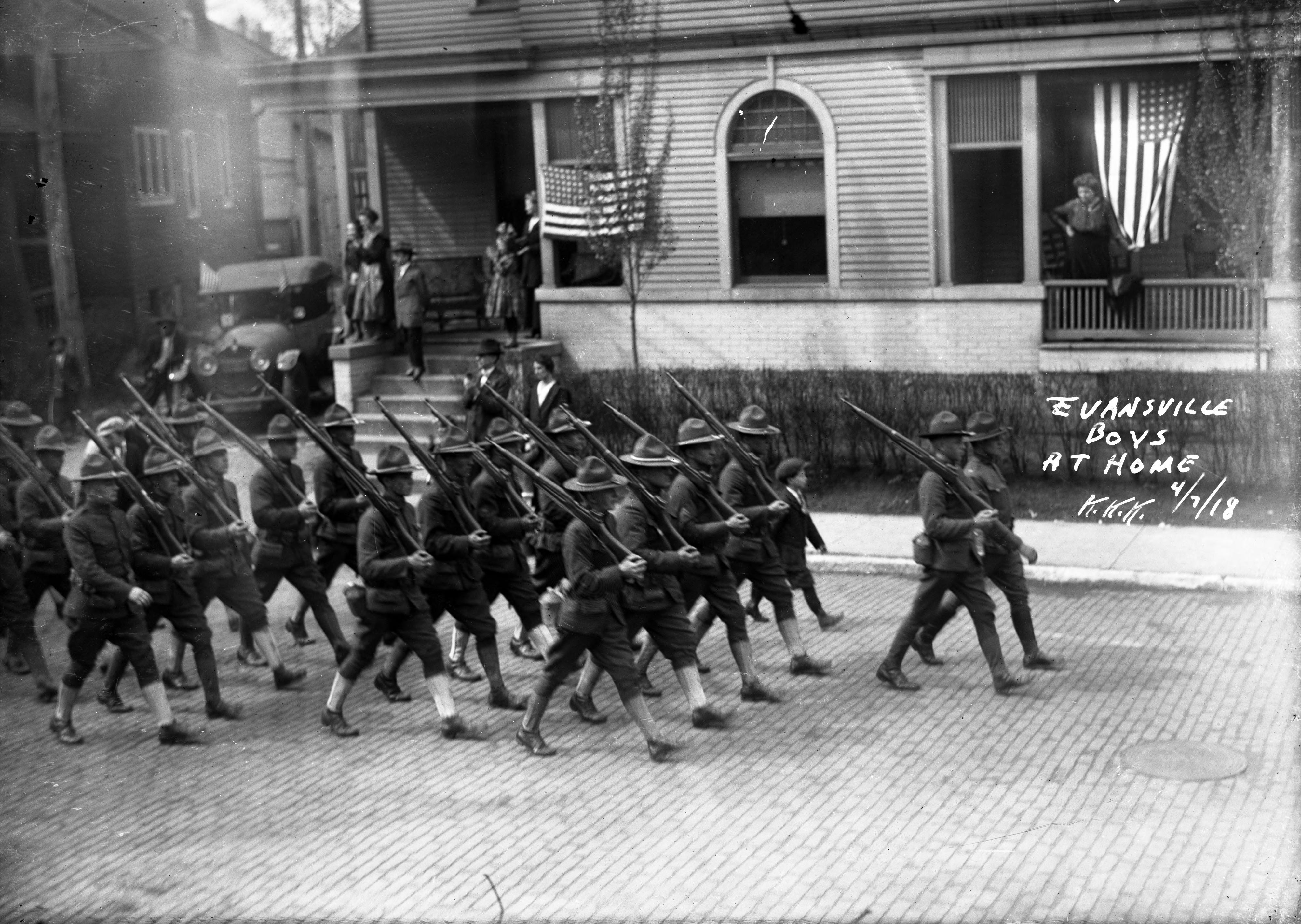 Soliders paradings, "Evansville Boys at Home" caption