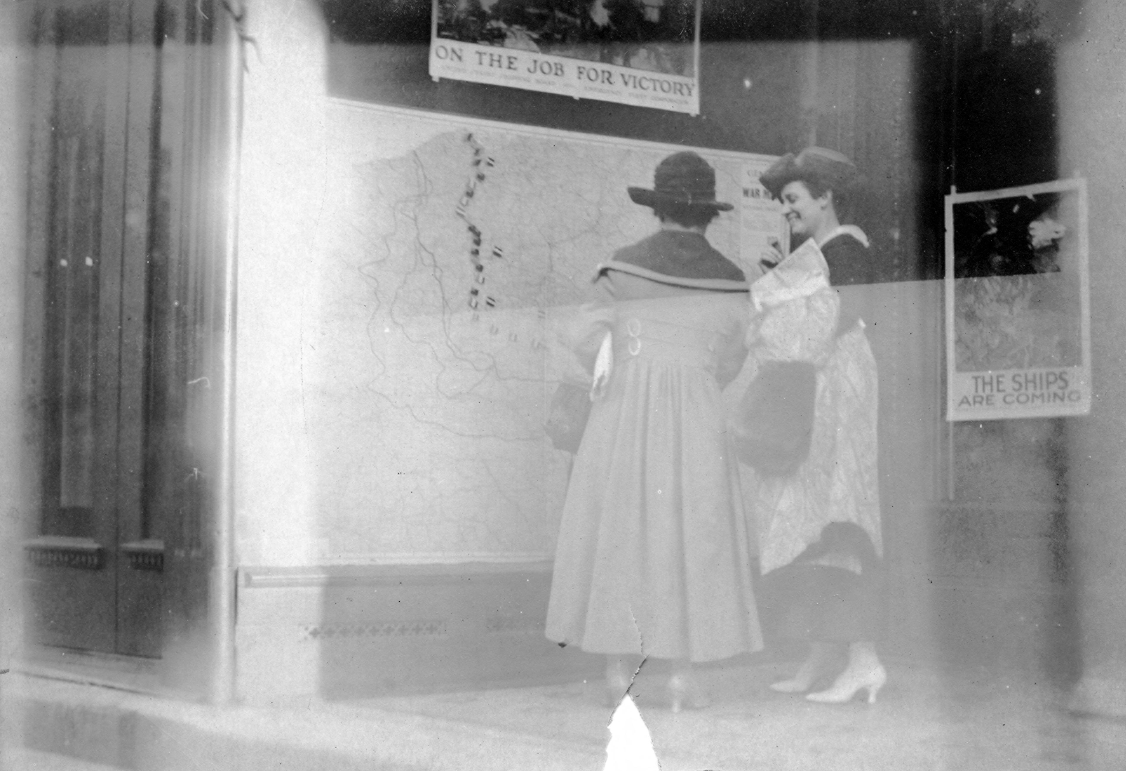 Positive print of women looking at Courier war map