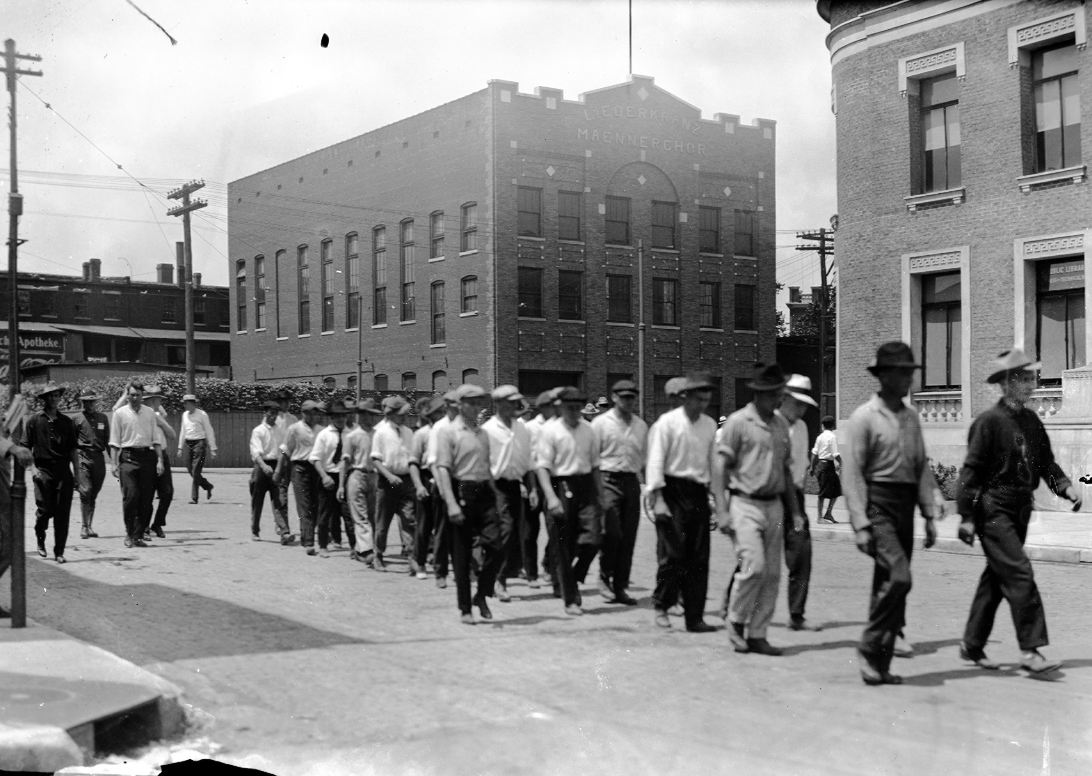 Company G marching in plainclothes
