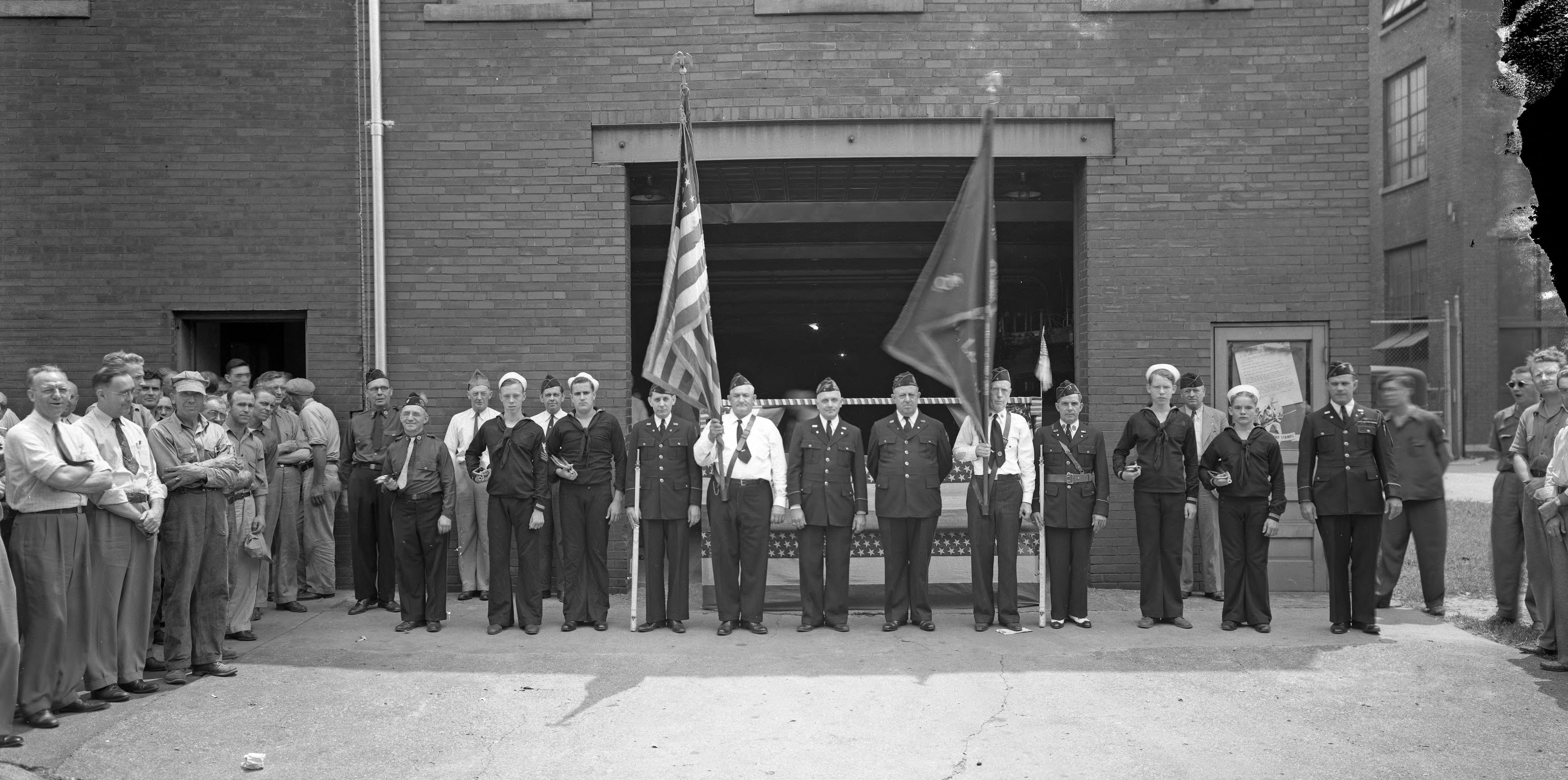 Group of employees and uniformed soldiers