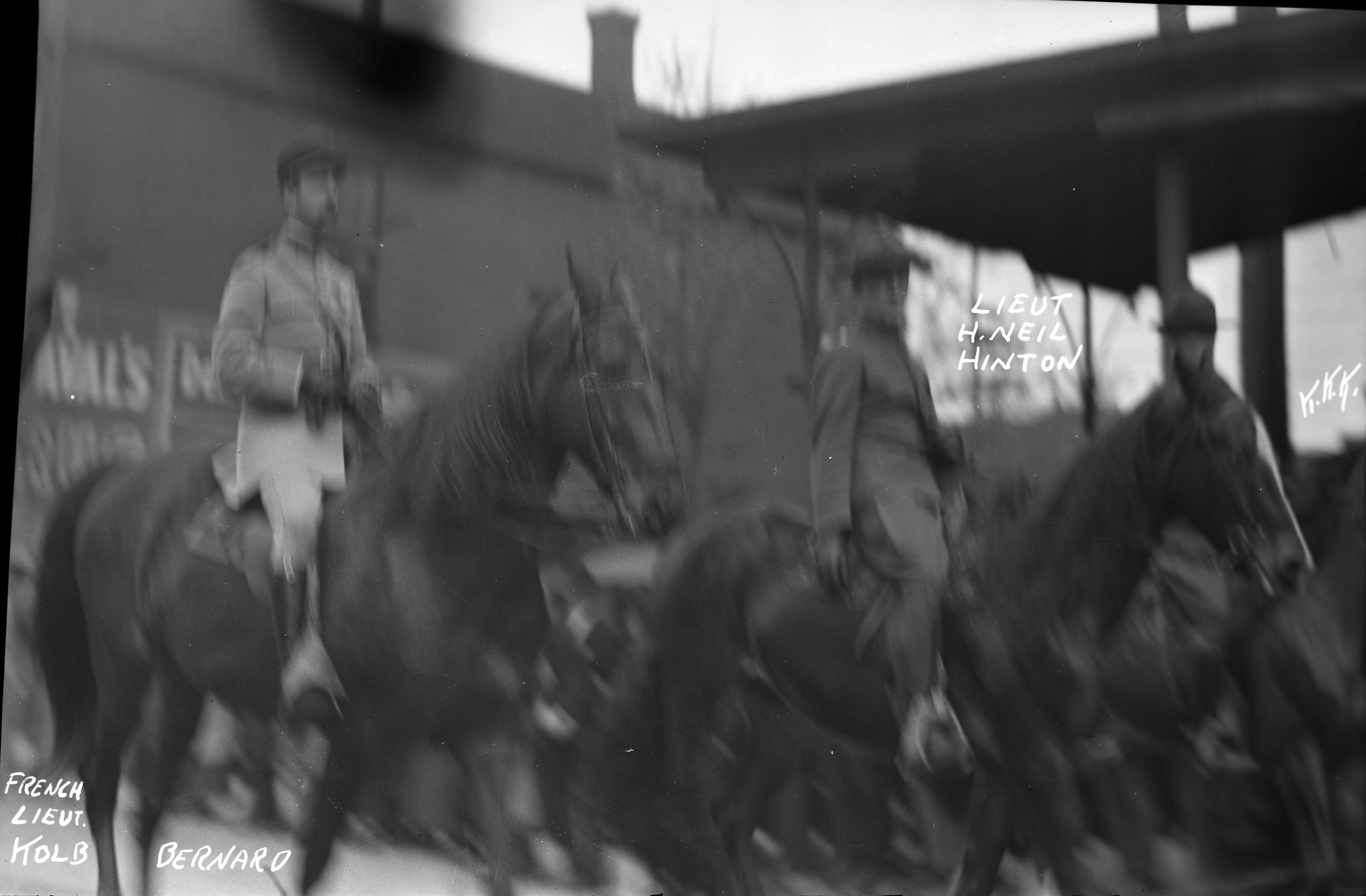 WW I parade, two lieutenants on horseback