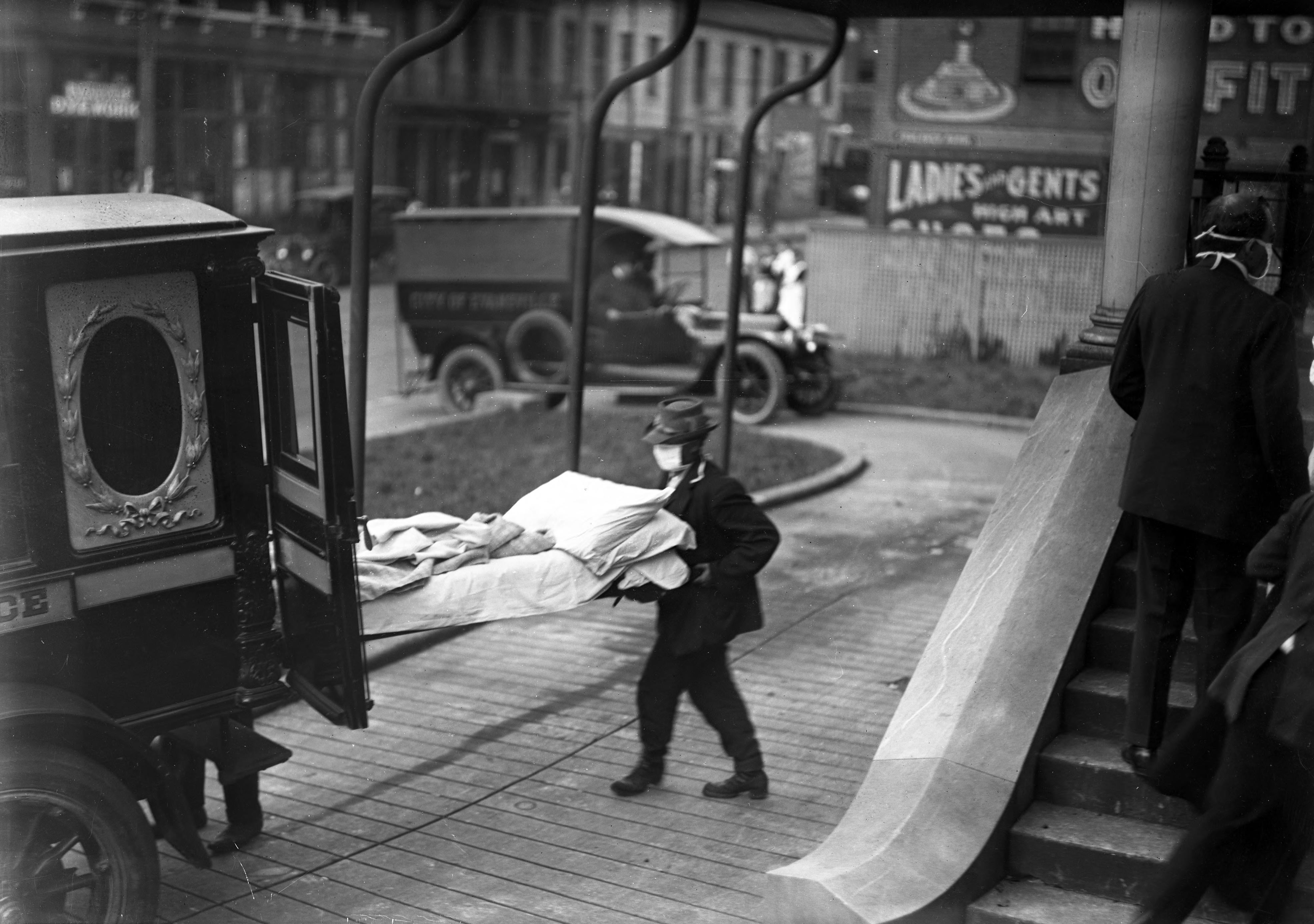 Man loading gurney into ambulance