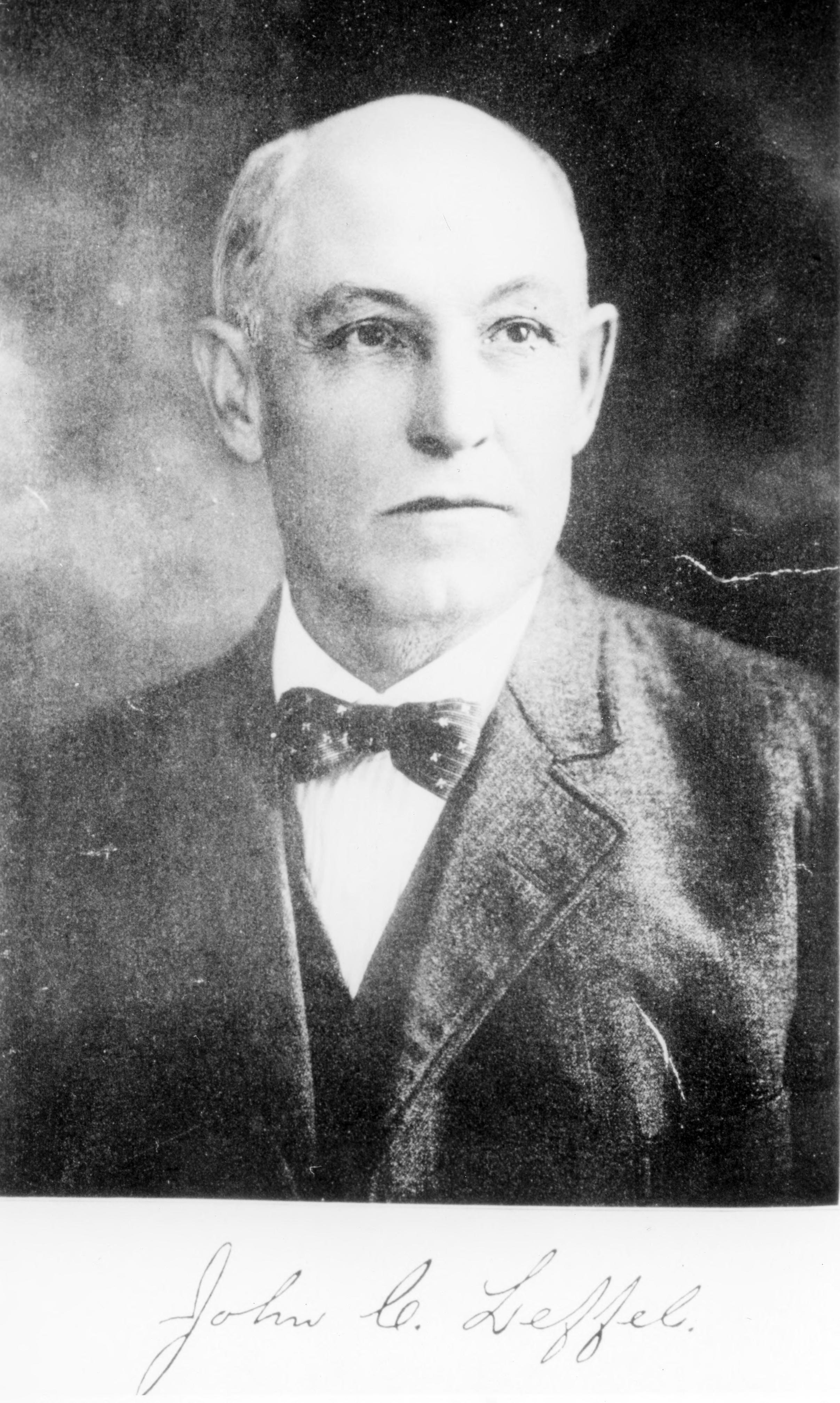 Picture of John C. Leffel (1850-1935). He is buried in Bellefontaine Cemetery in Mt. Vernon, IN. He was the owner/editor of the Western Star newspaper, founded in 1877. For ten years he also published a German language paper, Wochenblatt. He was the first in the county to install power presses, and the building that housed his newspaper was built according to plans he furnished. (http://mygenealogyhound.com/indiana-biographies/in-posey-county-biographies/john-c-leffel-genealogy-posey-county-indiana-mt-vernon.html)