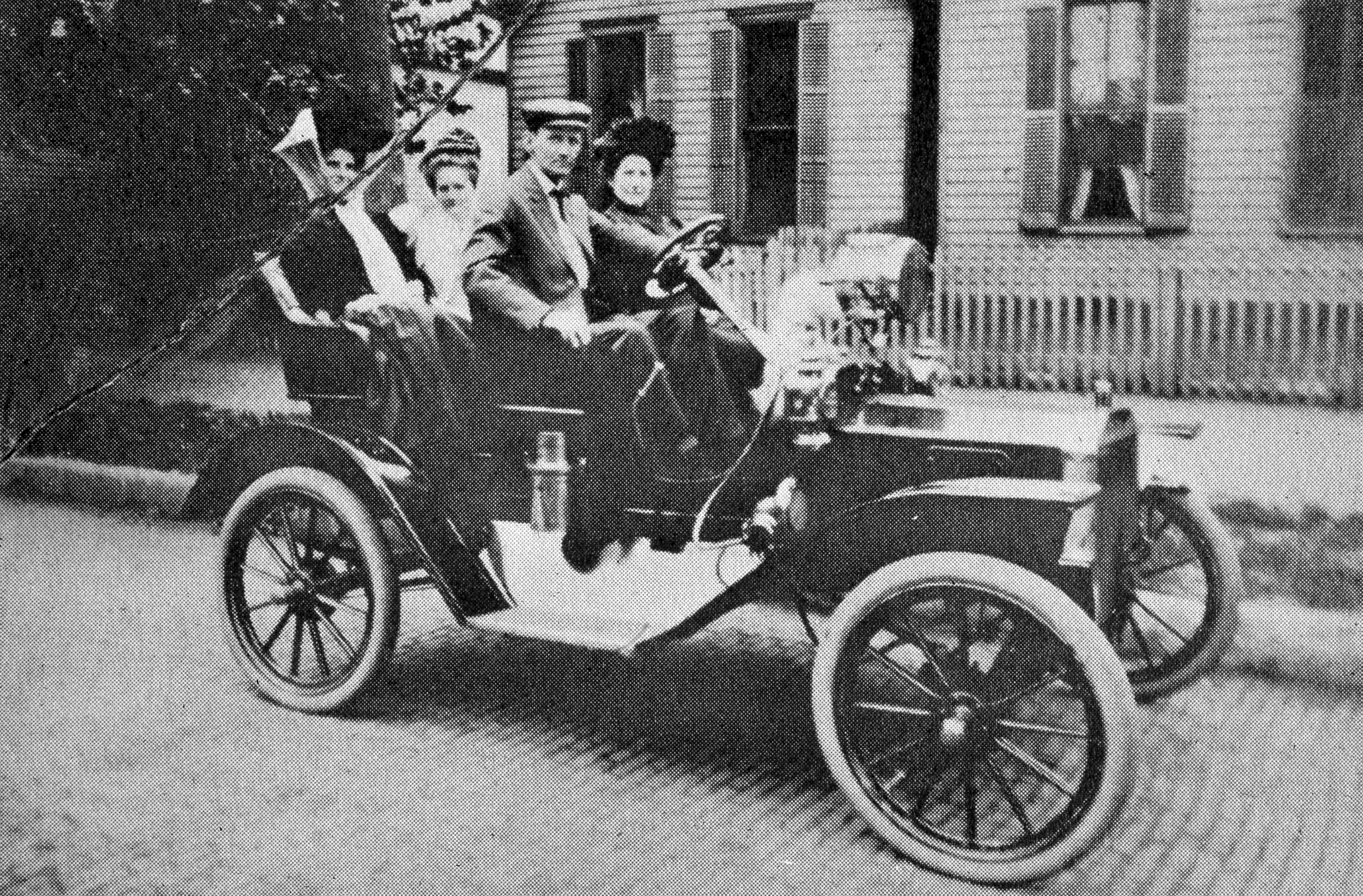 Four people in a turn of the century (20th) car