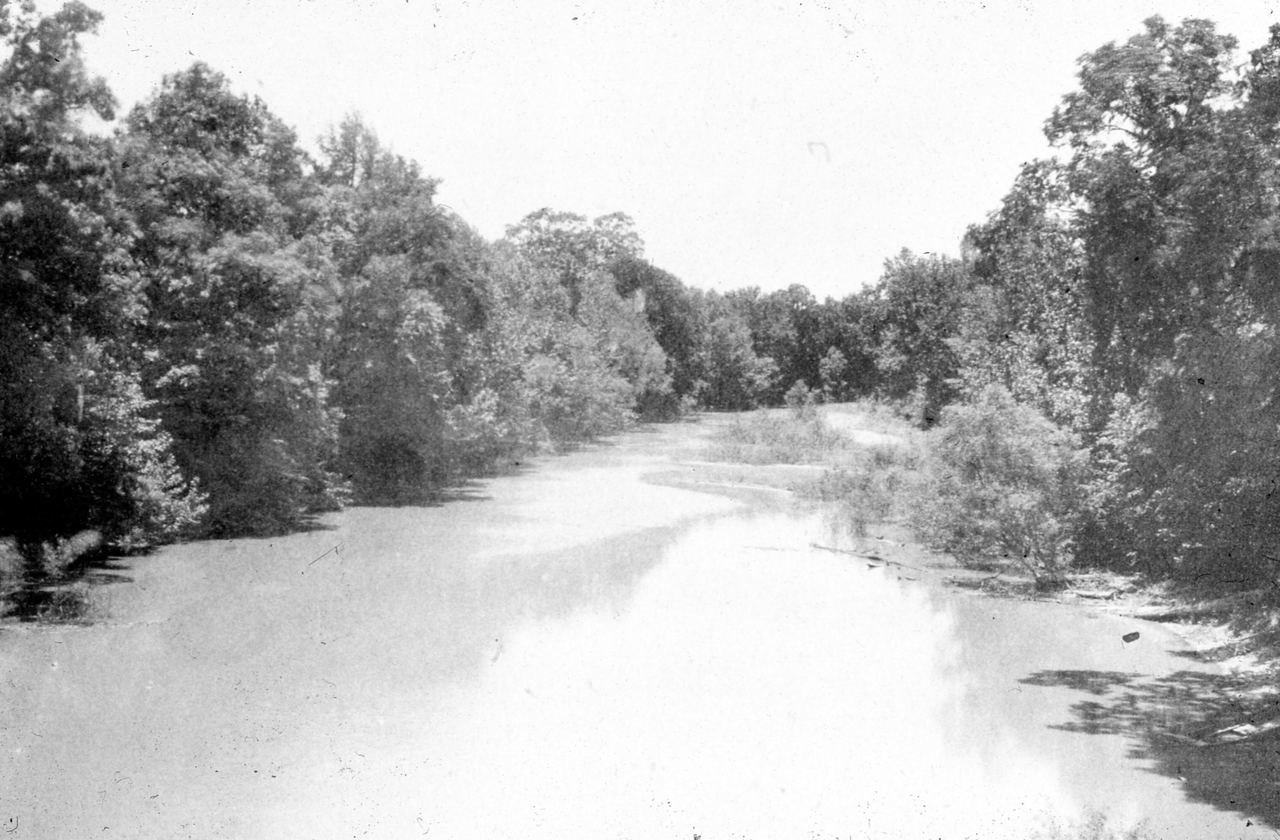 Pigeon Creek, said to be near where Stringtown Rd. crosses it. Pigeon Creek is a tributary of the Ohio River, beginning with 2 sources in Gibson County, IN that soon merge and meander some 47.5 miles to Evansville, IN, to empty into the Ohio.