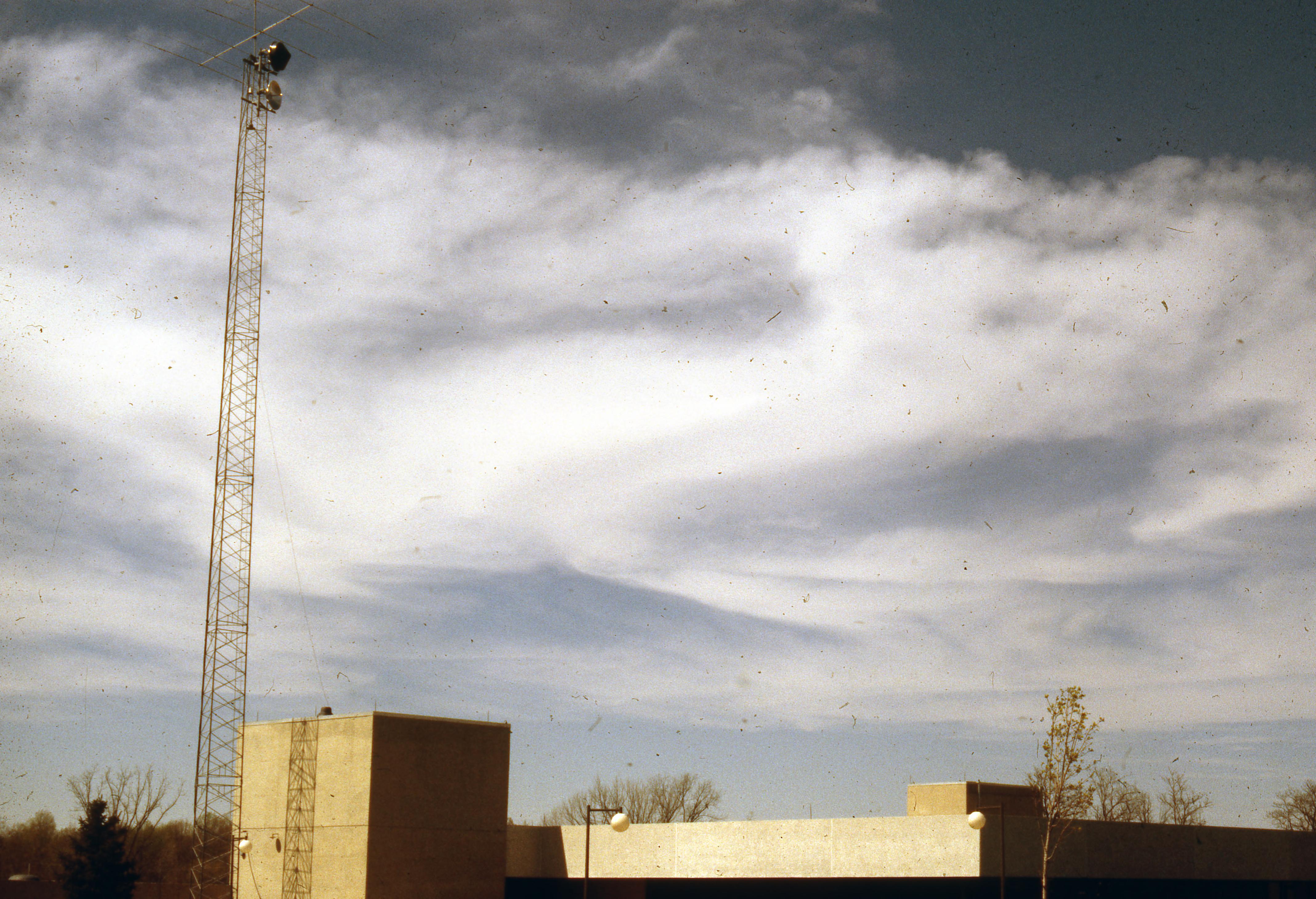 Indiana State University-Evansville (ISUE) at 8600 University Blvd. Established as a branch campus of Indiana State University in 1965, the college moved to the location depicted here, some 1400 acres, in 1969. In 1985 the university was made a separate state university, the University of Southern Indiana (USI). This is said to be the Technology building, built in 1975, the the angle, and the current absence of a radio tower make identification difficult.