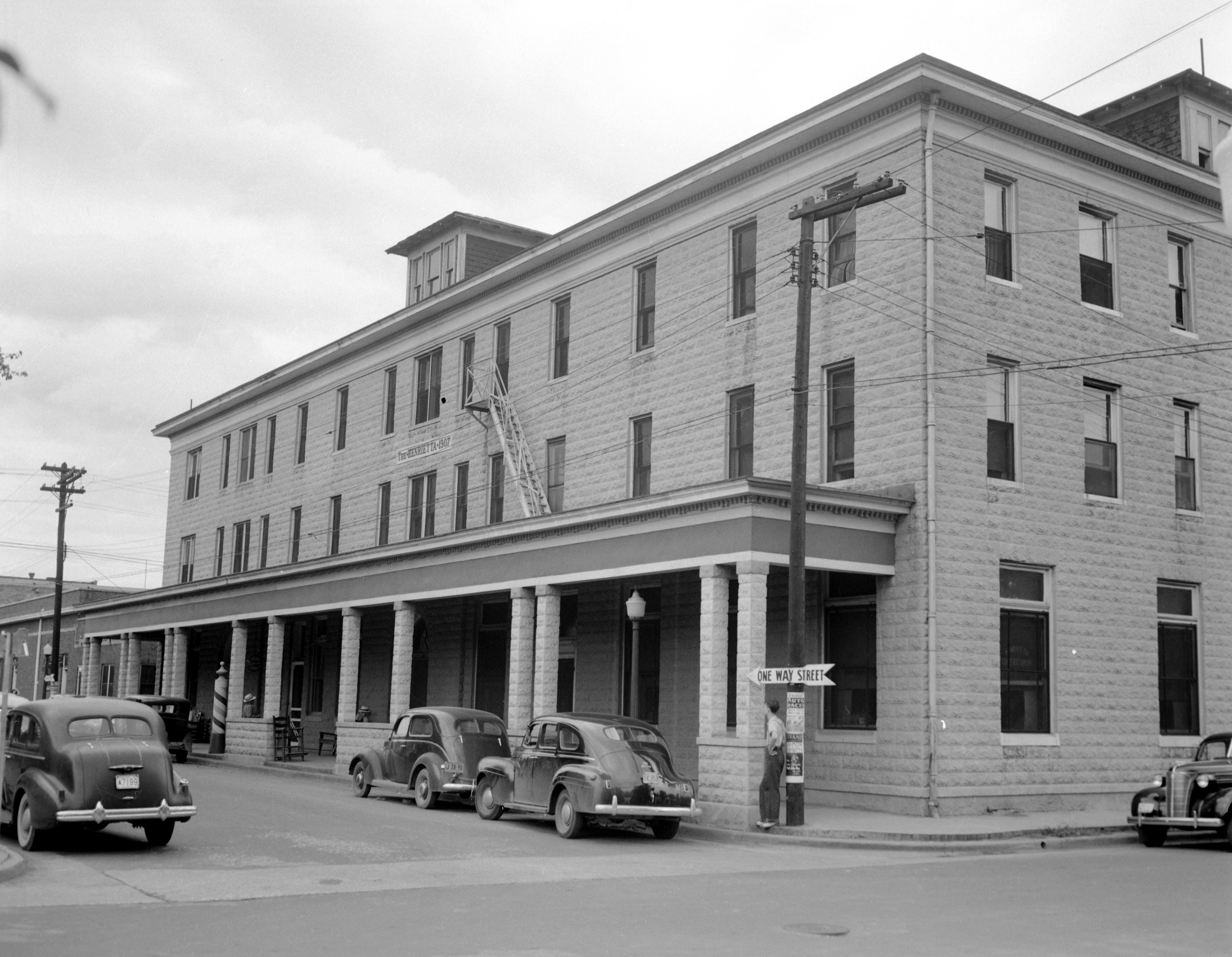 Henrietta building, built in 1907, with a barber shop on the ground floor. This apparently was a hotel.
