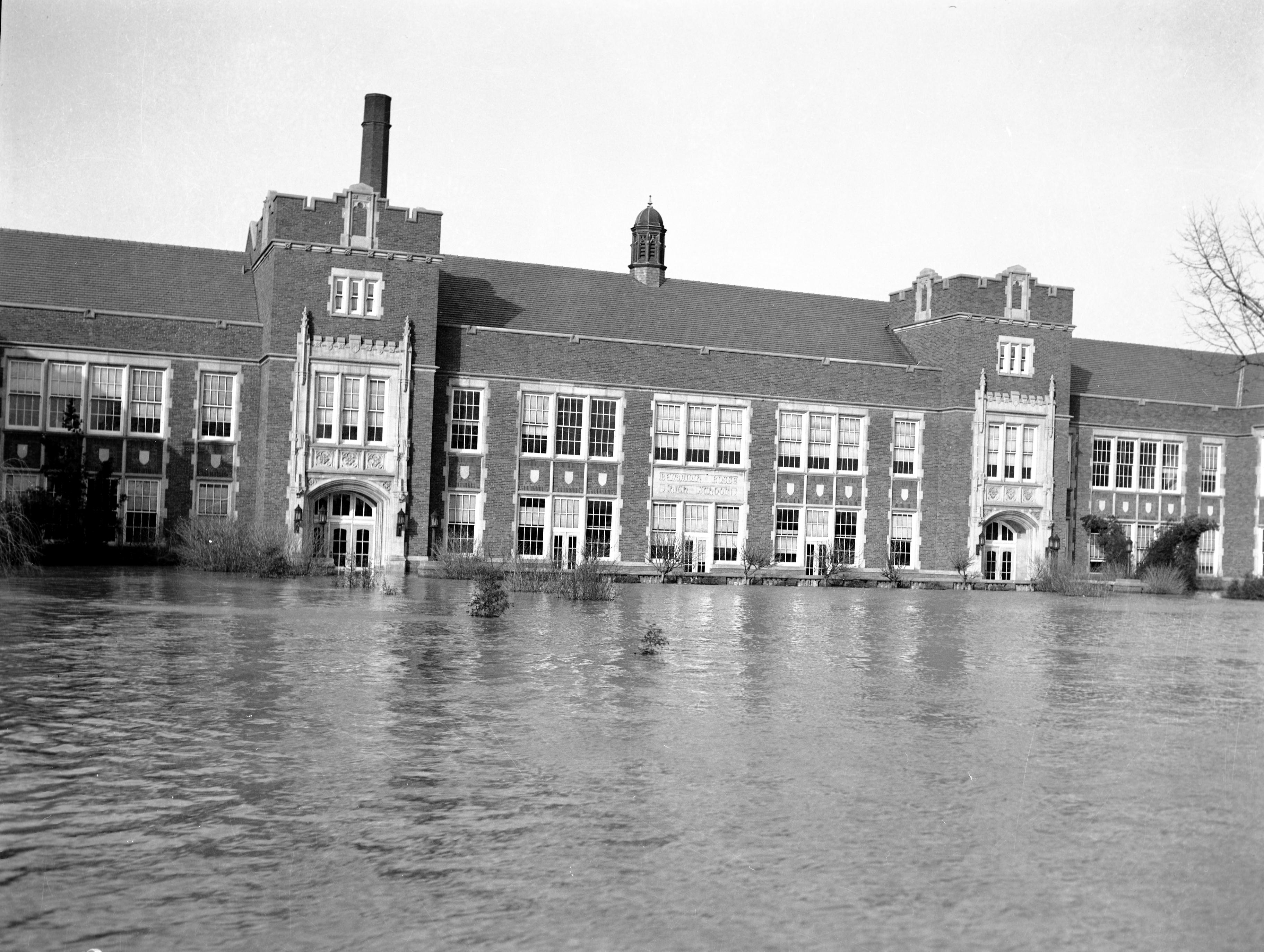Benjamin Bosse High School at 1300 Washington Ave. with water almost halfway up doors