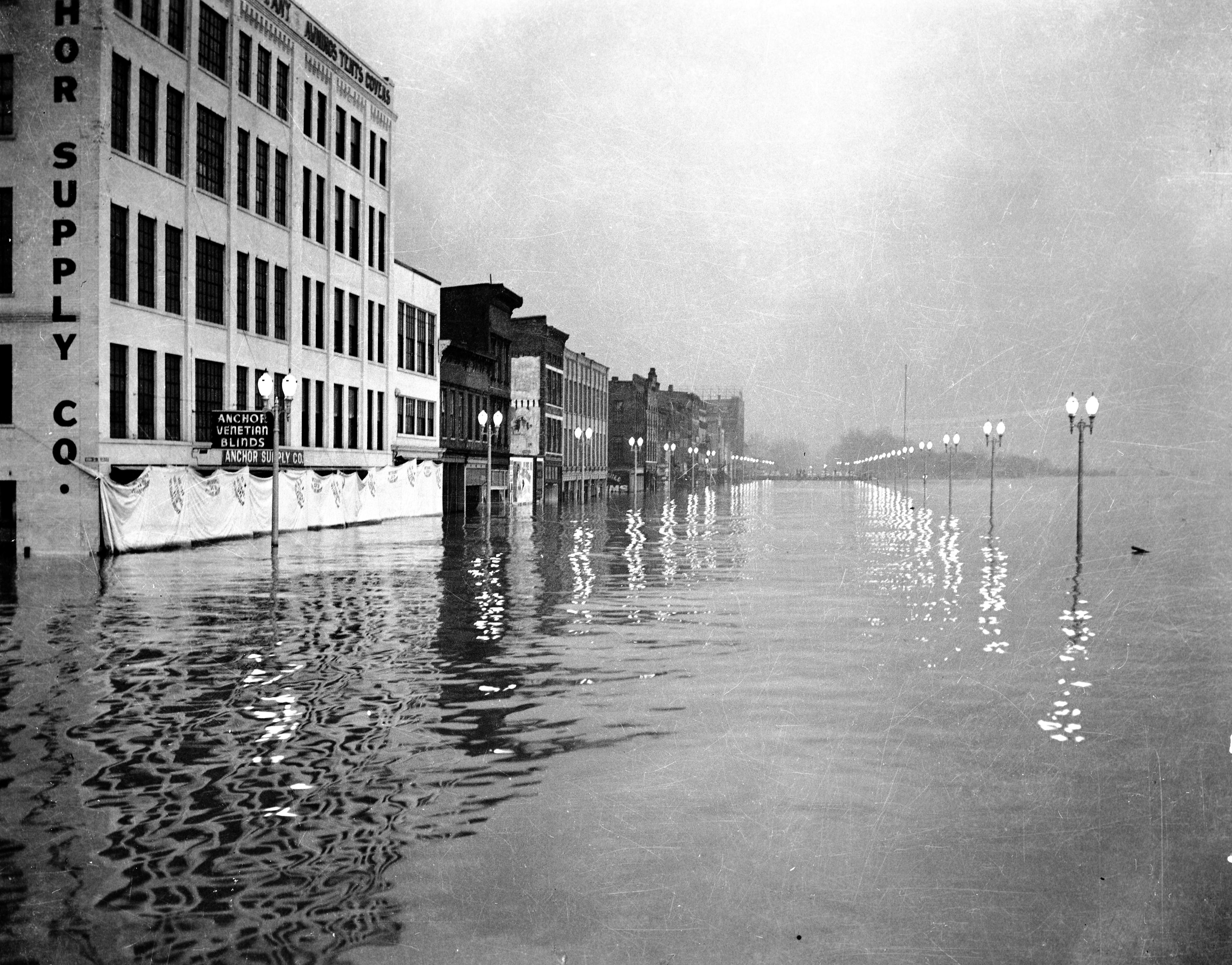Looking down Riverside Dr., with Anchor Supply Co. (121-25 NW Riverside Dr., corner with Vine St.) on left. The date of this photo puts it 2 days after the crest, which was at 53.96 ft. in this location.