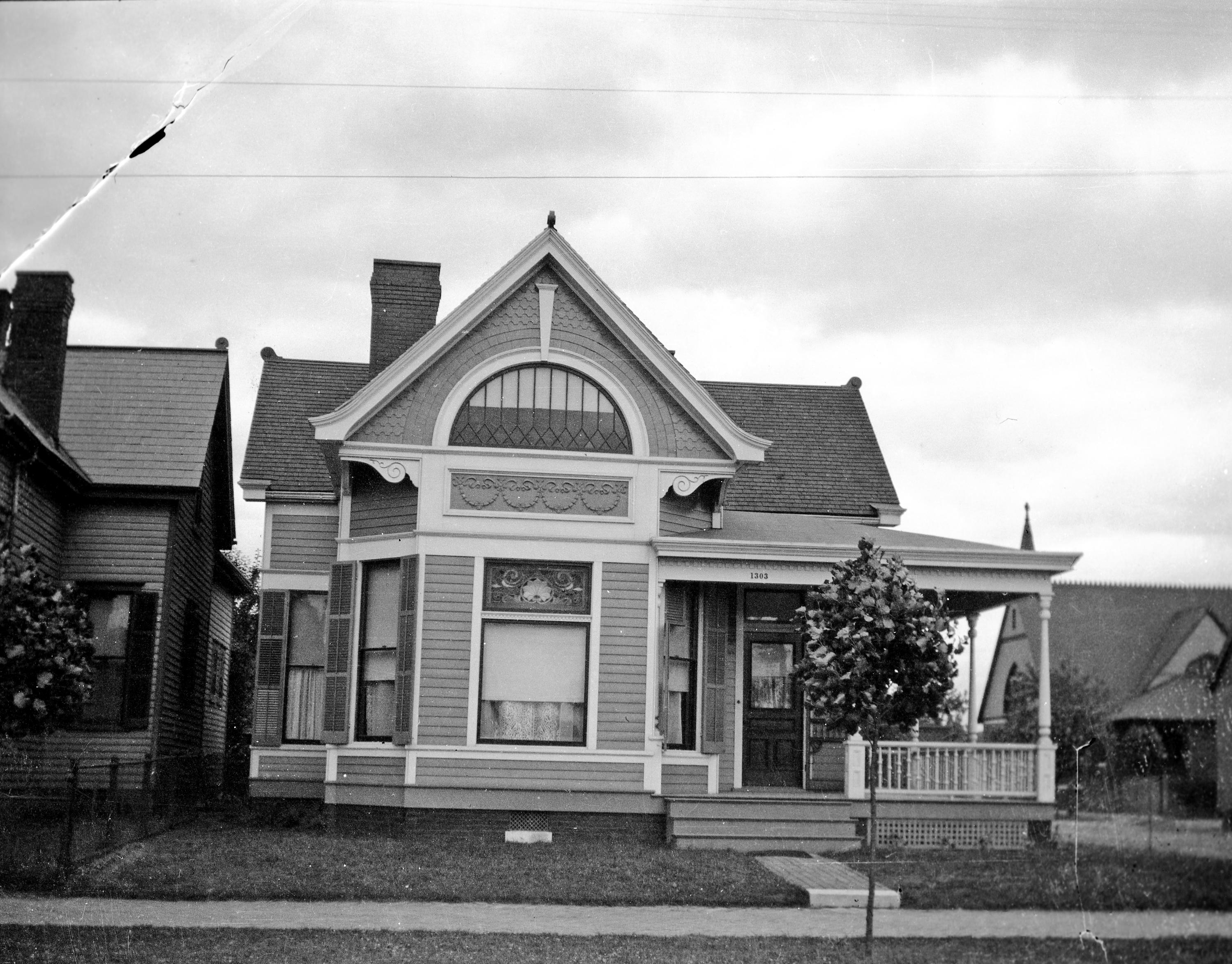This the Mueller home at 103 E. Columbia, formerly 1303 before renumbering. The street is paved in brick.
