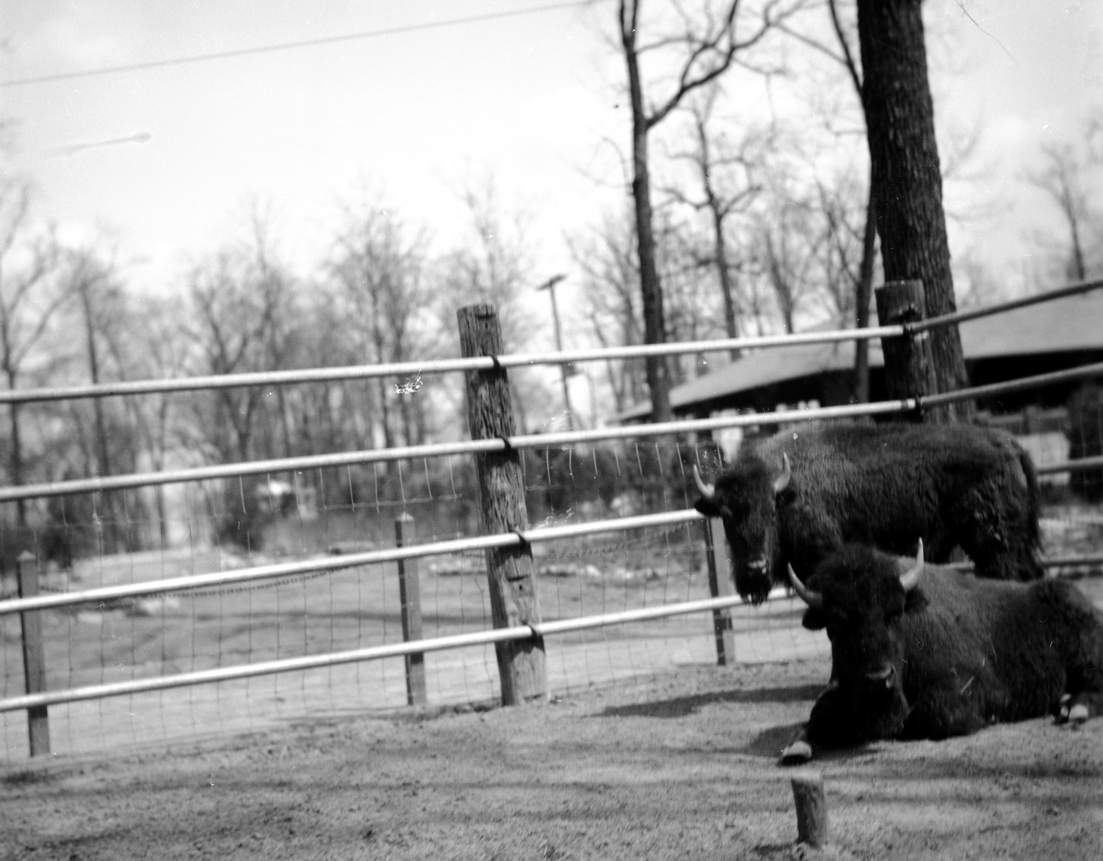 Mesker Park Zoo bison (2) in outdoor enclosure
