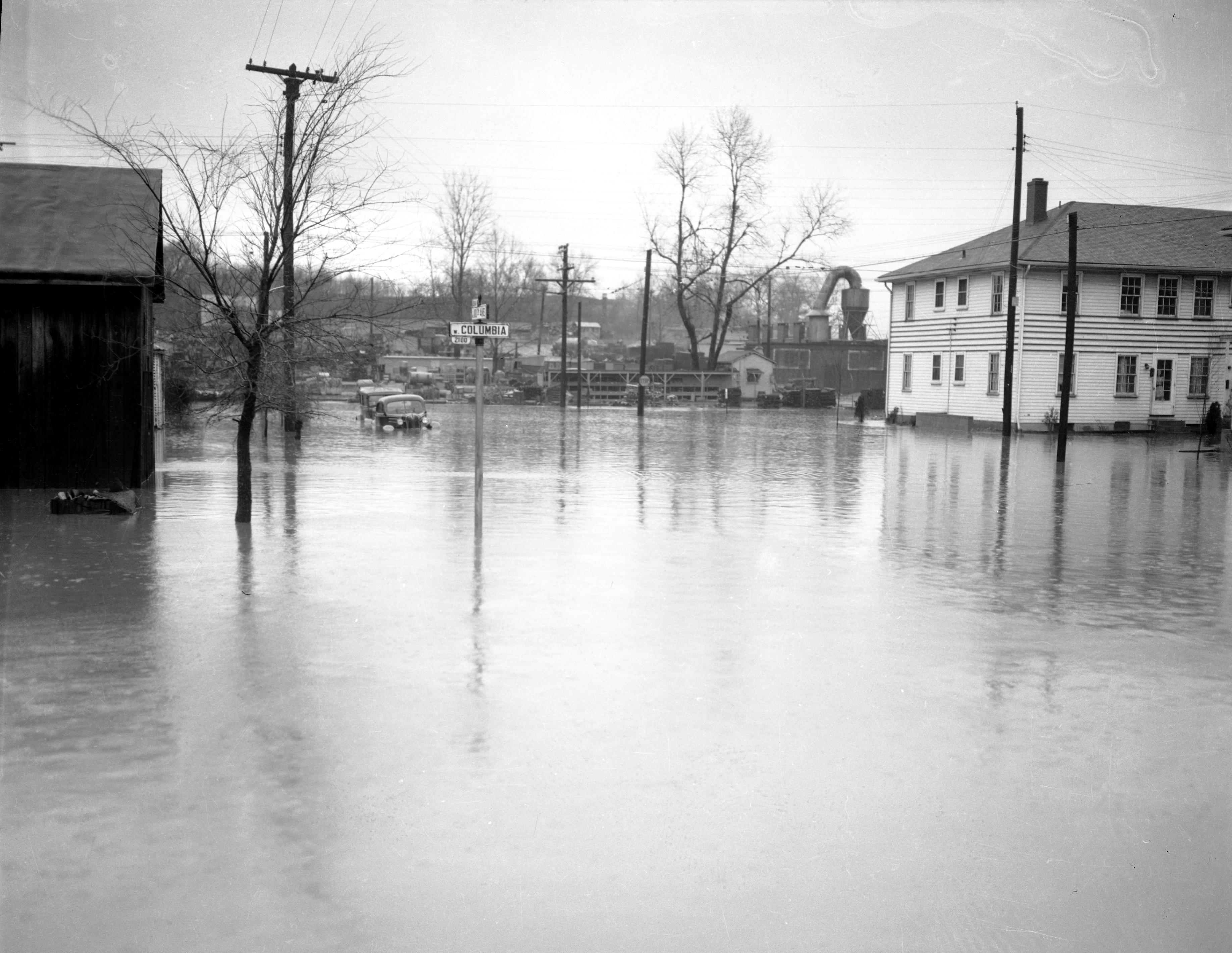 Intersection of W. Columbia St.and N. 10th Ave., flooded up to the headlights of the cars.
