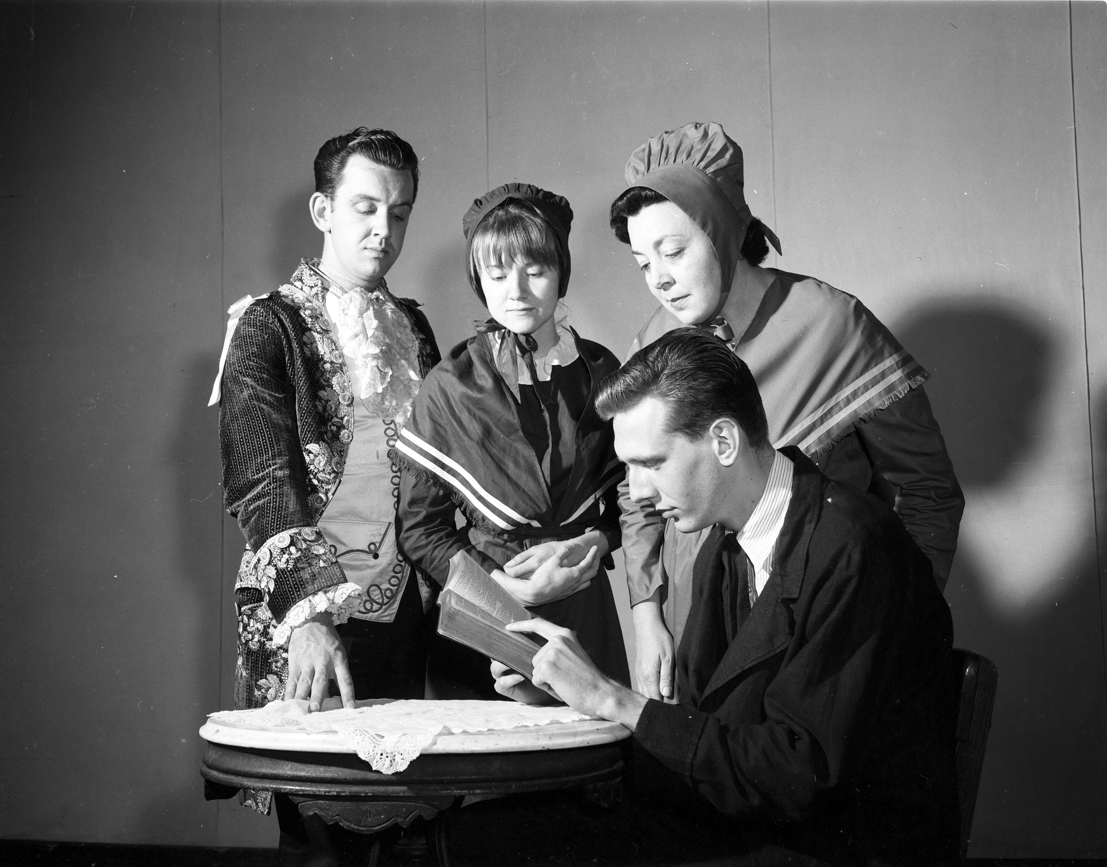 Cast of Trumpet, Blow True, a play commemorating the 150th anniversary of New Harmony. The play was written by an area man, Rev. John Edward Schroeder (1924-2015).