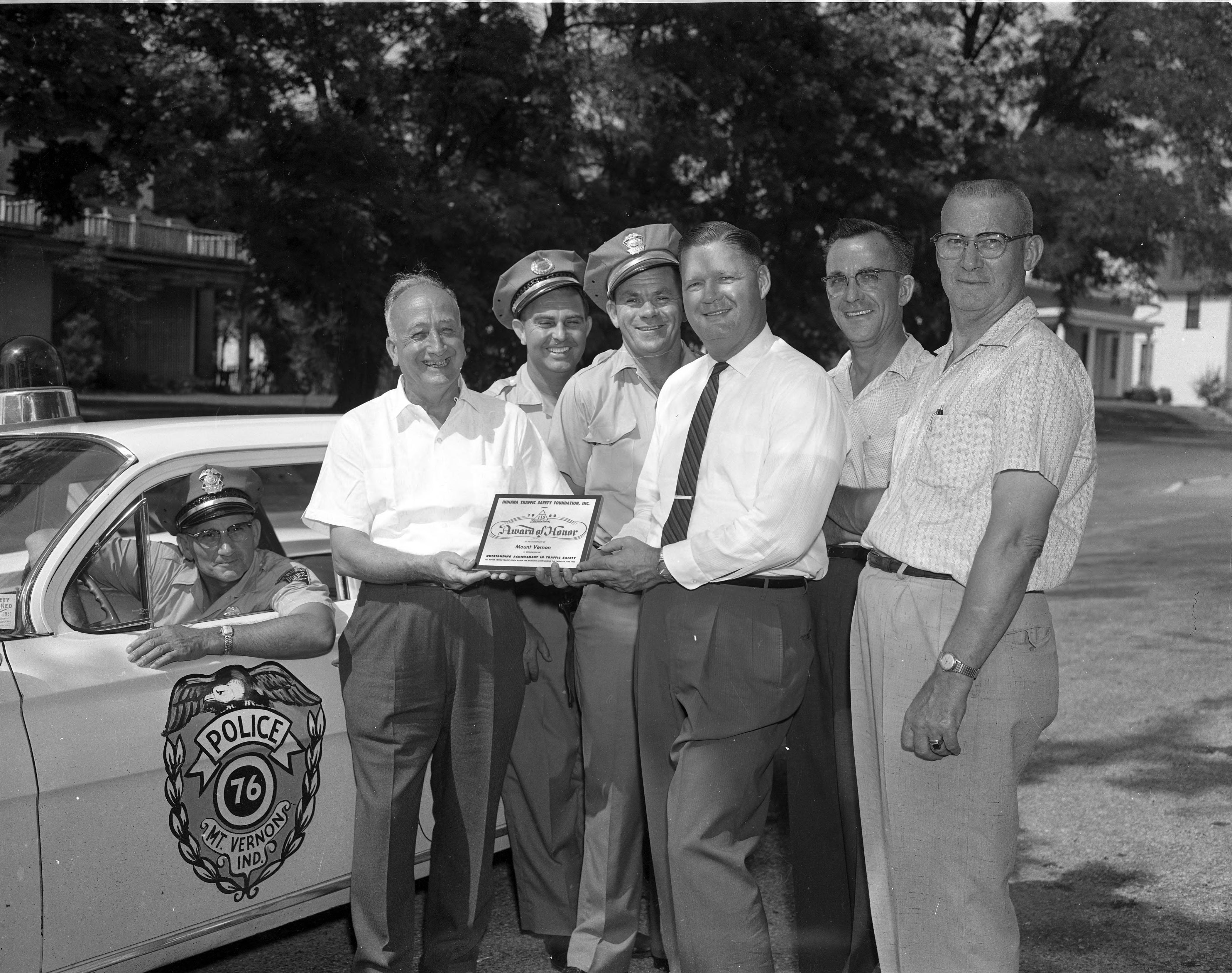 Presentation of the Indiana Traffic Safety Foundation, Inc. award to the city of Mount Vernon---being accepted by members of the police department