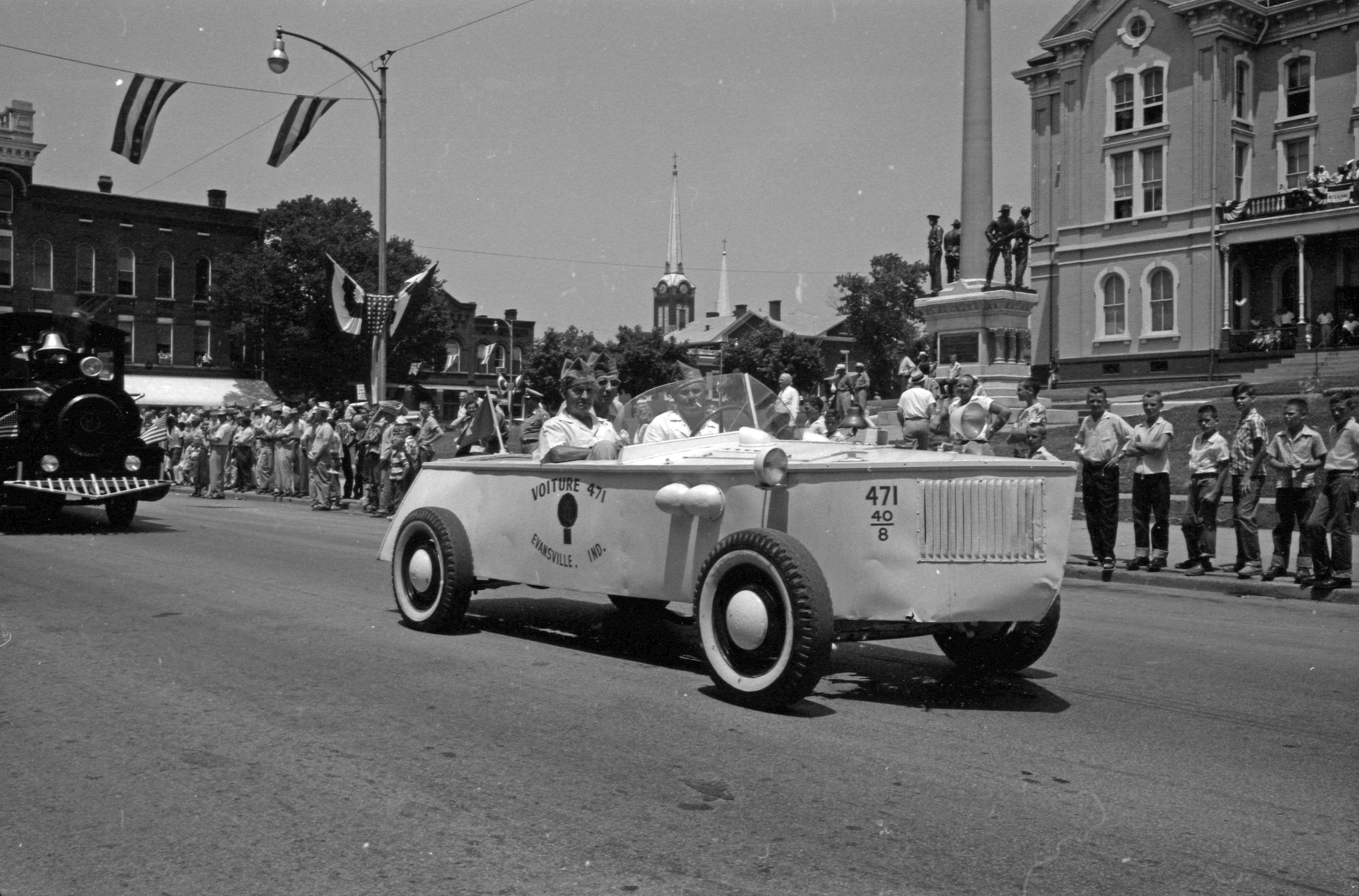Mt. Vernon sesquicentennial Parade with a old military car from the Voiture 40&8 No. 471 from Evansville, Indiana