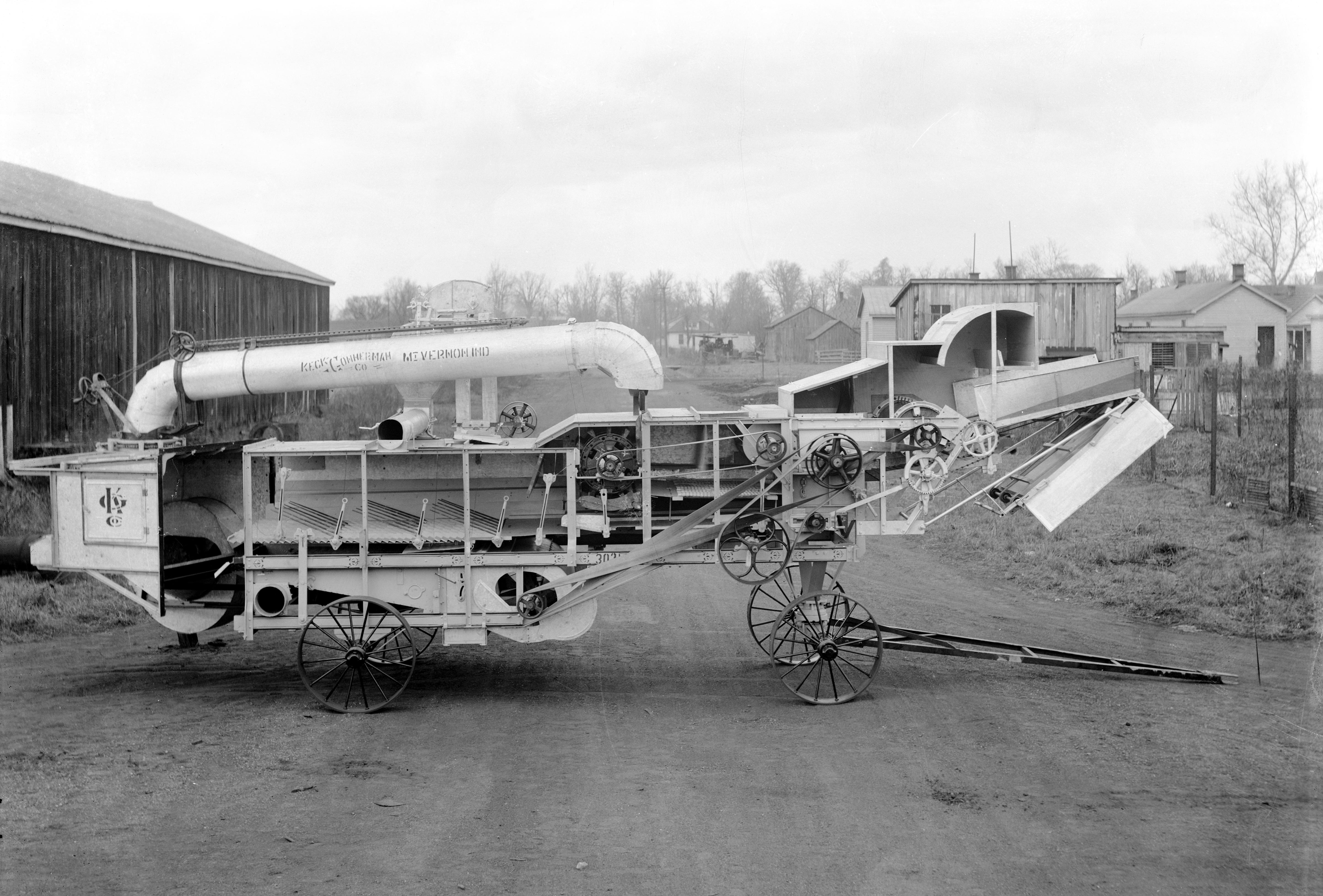 Keck Gonnerman wheat separator. Keck-Gonnerman was headquartered in Mt. Vernon and manufactured, sold, and serviced mobile steam engines and grain threshers; it was located at 4th St. and Pearl St. It was in operation 1873-1955. The Keck-Gonnerman Company has its roots in the Woody and Keck blacksmith shop in Posey County, Indiana, with John Keck and John C. Woody operating the business as partners. By 1880 Mr. Woody retired and sold his interest to John Onk of Louisville, Kentucky. The firm, now called Keck and Onk, prepared to make hollowware, but this ended when Mr. Onk sold his interest in the firm and returned to Louisville. William Gonnerman and Henry Kuebler joined John Keck as business partners. By 1884 the company name was changed to Keck-Gonnerman and they produced their first steam engine and thresher. The next year John Keck's brother, Louis H. Keck, joined the firm, buying out Mr. Kuebler's interest in the company. The Keck-Gonnerman Company produced steam engines, threshing equipment as well as mining equipment and sawmills under the Kay-Gee trademark. The company employed over 300 people in Mt. Vernon, Indiana, and their products were used as far away California, Canada, and Cuba. Over the years Keck-Gonnerman developed their product line. They built their first two-cylinder kerosene tractor in 1918, and by 1928 they began to sell four-cylinder tractors. Two years later they built their last Kay-Gee steam engine. Their thresher line kept pace with tractor development with the first tractor-size separator built in 1921 and the first steel frame separator built in 1926. By the early 1950s the self-propelled combine came on the market. In 1953 the Keck-Gonnerman Company was sold to two engineers from California, Harrison and Spenser, who hoped to manufacture new farm equipment. Two years later the company closed its doors. (http://cygnuschronicles.wikidot.com/tcotw:keck-gonnerman-co)