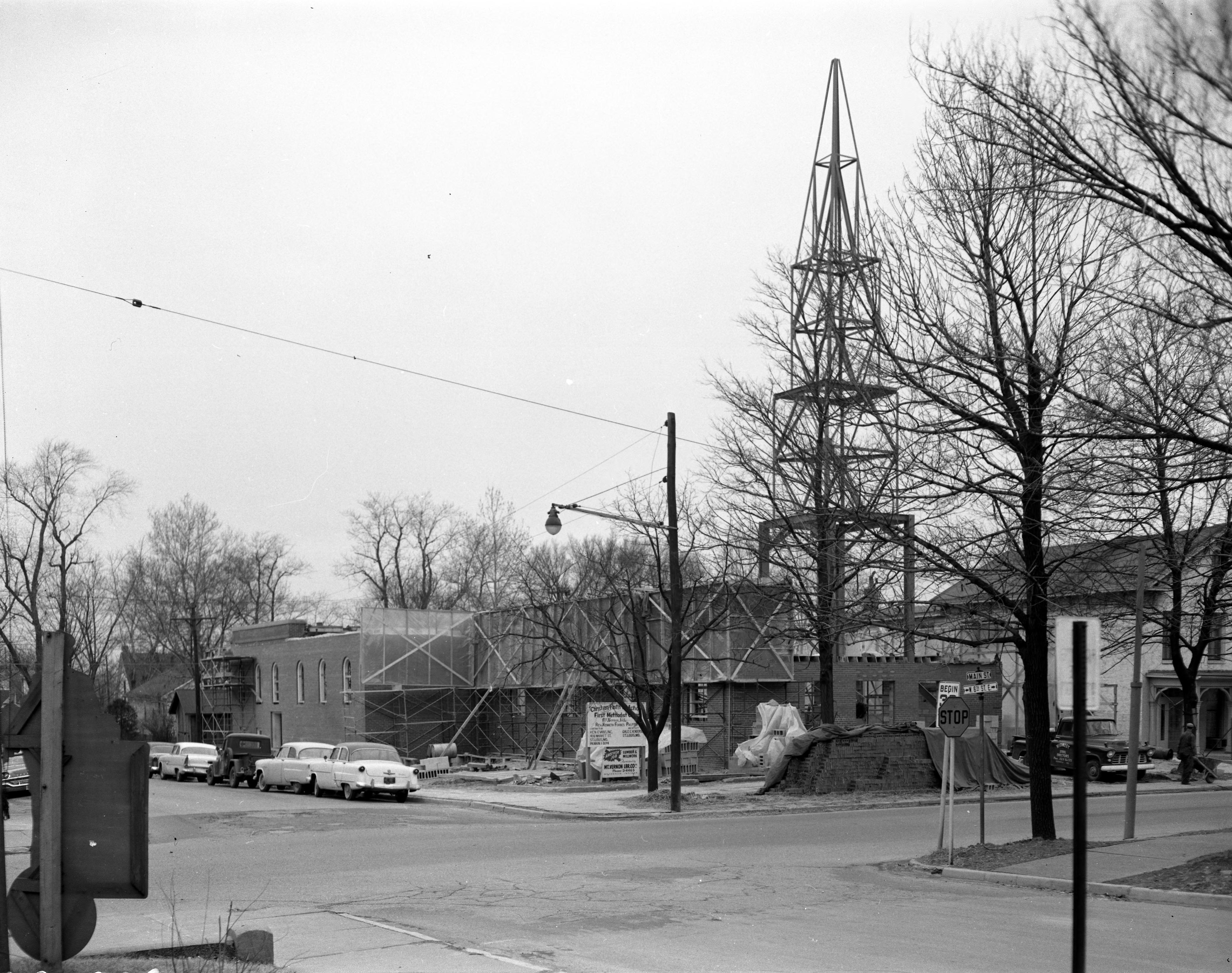 First Methodist Church at 601 Main St., on the corner with 6th St. This is the construction of the current building.