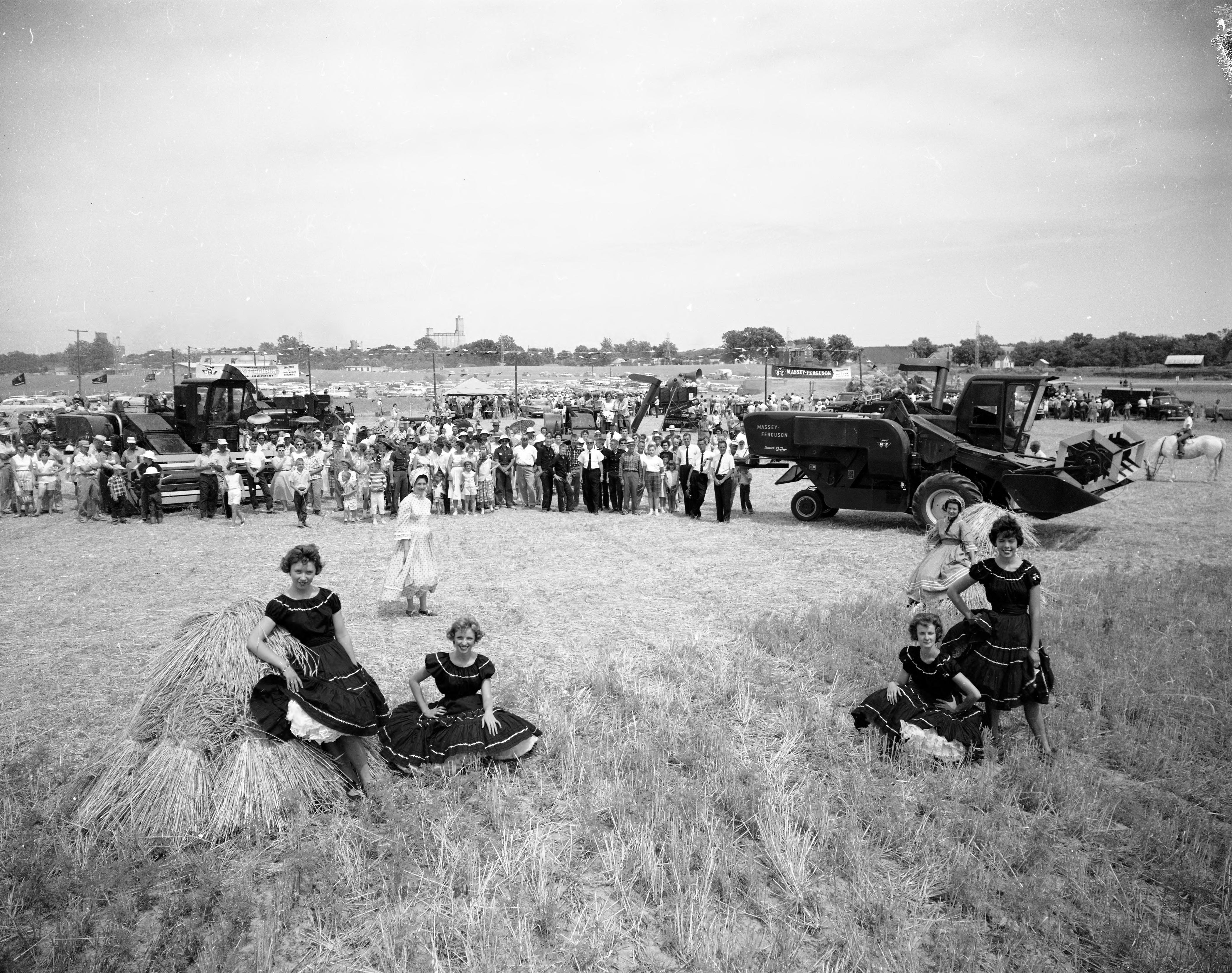 Threshing Day celebration, sponsored by Juncker Brothers. Juncker Brothers Sales and Service--this company sells equipment and conducts agricultural auctions--is located at 601 Mackey Ferry Rd. E. The location seen here is unidentified.